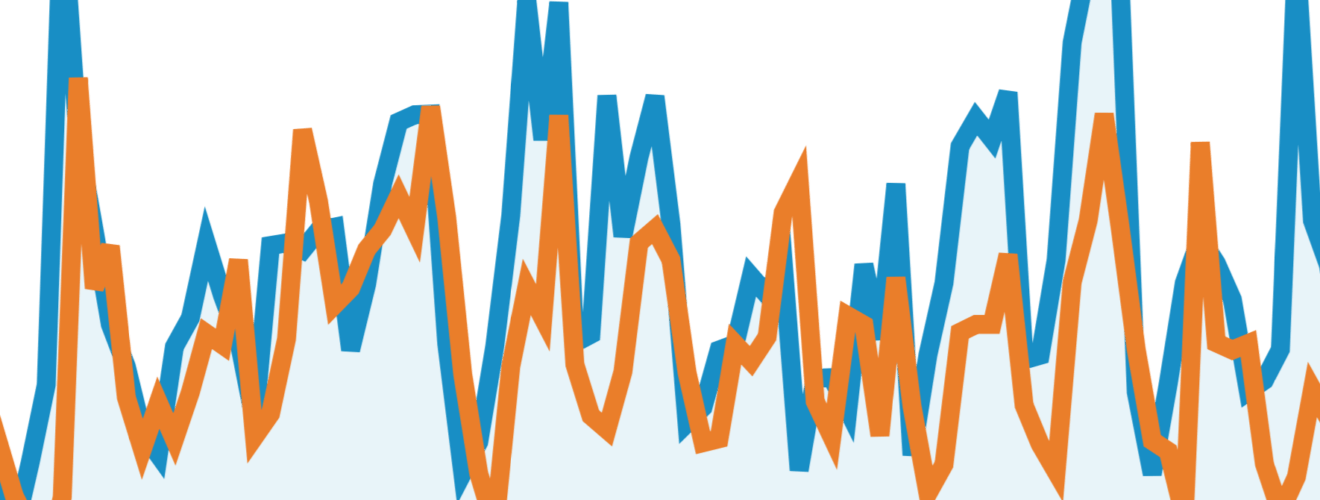2015年の日毎ページビュー数を集計した(青)。比較のために2014年についてもまとめた(橙)