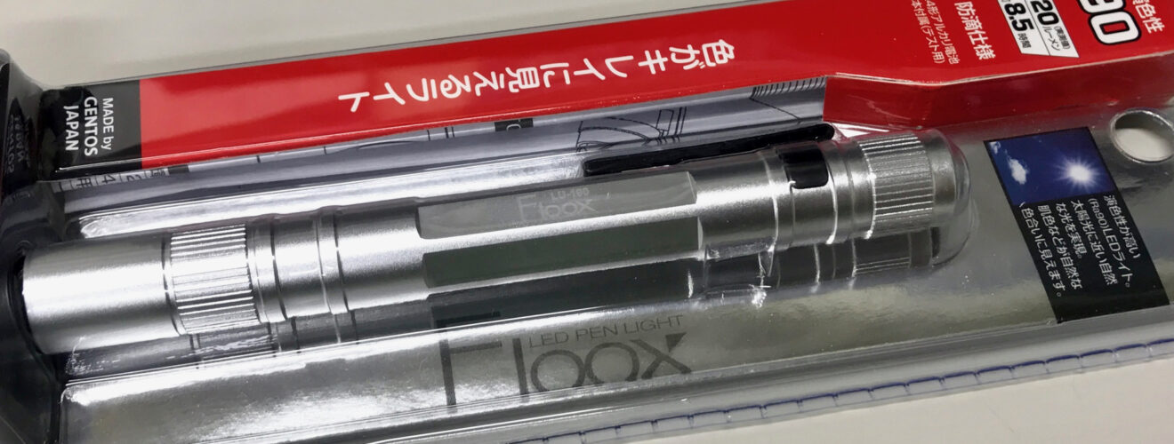 ジェントスは日本の会社。フルークス LU-190は、中くらいの価格で、白色LEDの高演色性をうたうペンライトで、日本の会社らしい品質で(製造は中国)、医師からの評価が高い。前機種のLU-185のほうが好まれていたが、現在はプレミア付き。LU-190の欠点は光の縁に色付きが出ることだが、レンズに3M スコッチ メンディングテープ(貼ると見えなくなるセロハンテープ)を貼ると改善される。