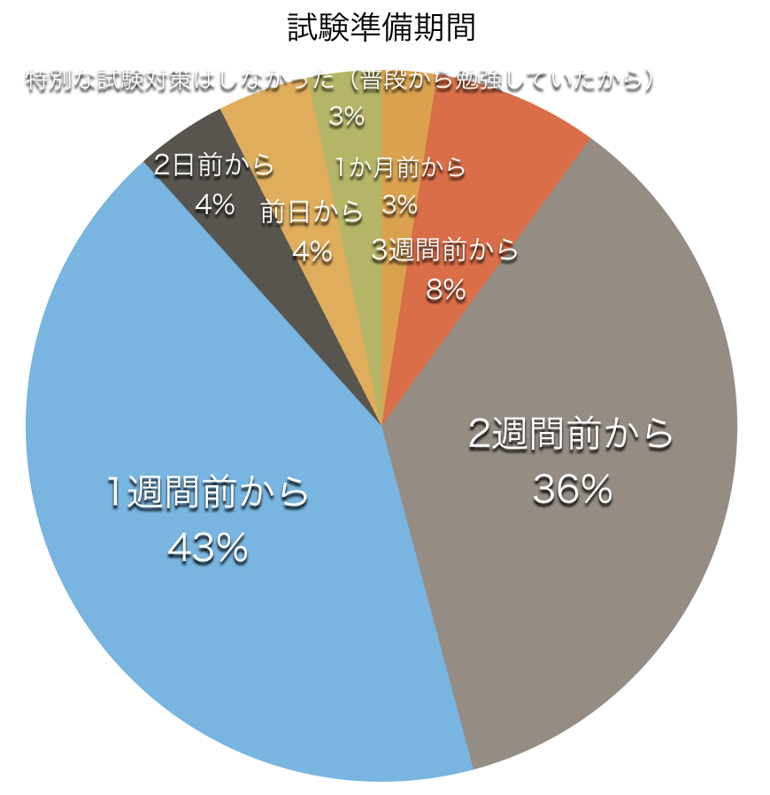 | 試験準備期間の学習時間(h/d) | 6.45 | 2.93 | 96% |