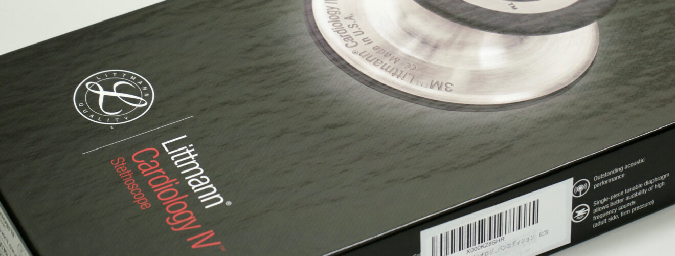 3M リットマンの循環器専門医用の代表的な聴診器「カーディオロジーⅣ」。2016年に前モデルの「カーディオロジーⅢ」からモデルチェンジされた。2018年6月現在、米国Amazon.comには800件を超えるレビューがある。平均4.8/5で、聴診器では最も高評価。米国製。