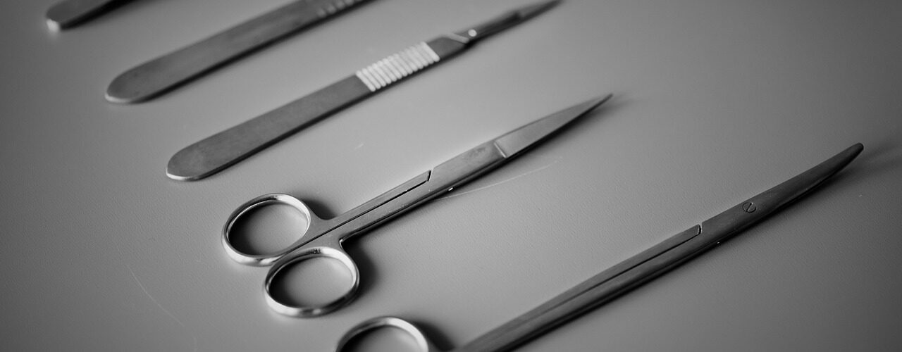 医療の業界では、ハサミを「剪刀(せんとう)」という。実際の外科手術では、剪刀は切断のためより、組織の剥離(鈍的剥離)の目的に使うことが多い。閉じたハサミを組織に差し込み、そのままハサミを開いて剥離する。刃が組織に当たらないので、大切な血管や神経を切らずに済む。