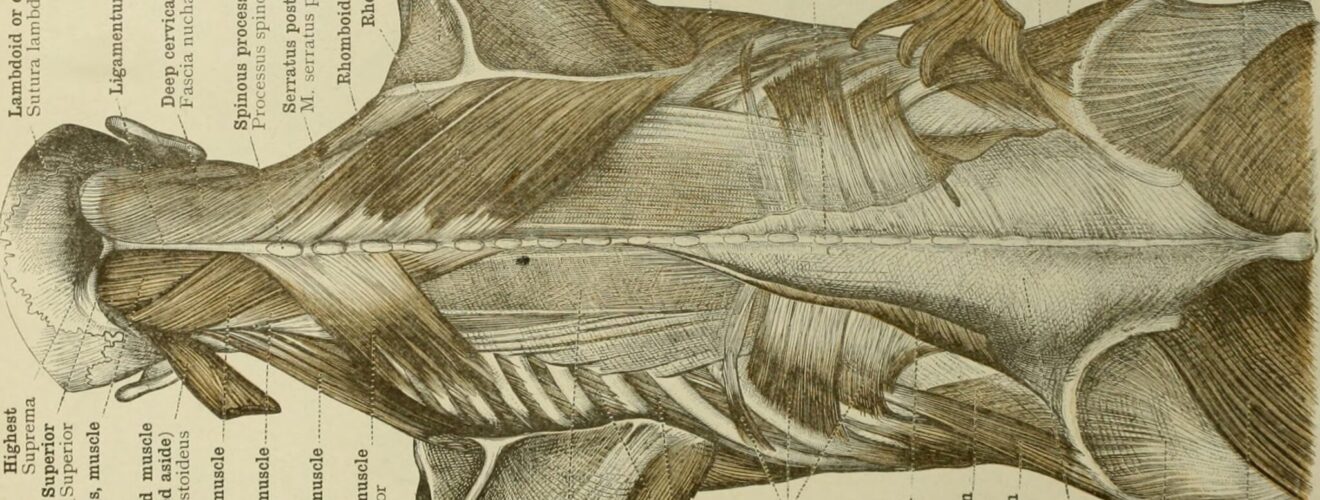 脊髄の剖出をスムーズに行うために、背部深層の筋や靭帯、軟部組織はできるだけ取り除いておいてください。