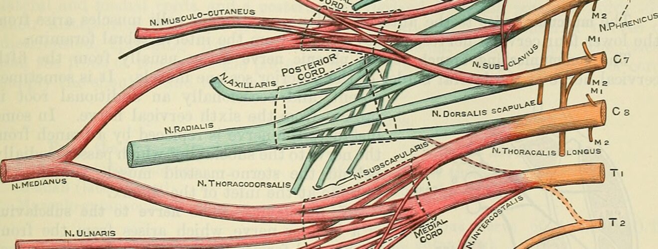 - 神経の同定は、その分布先、支配先で。分岐の状況や場所は当てにできない(腕神経叢には変異が少なくない。外傷の治療なら形がうしなわれていることも)