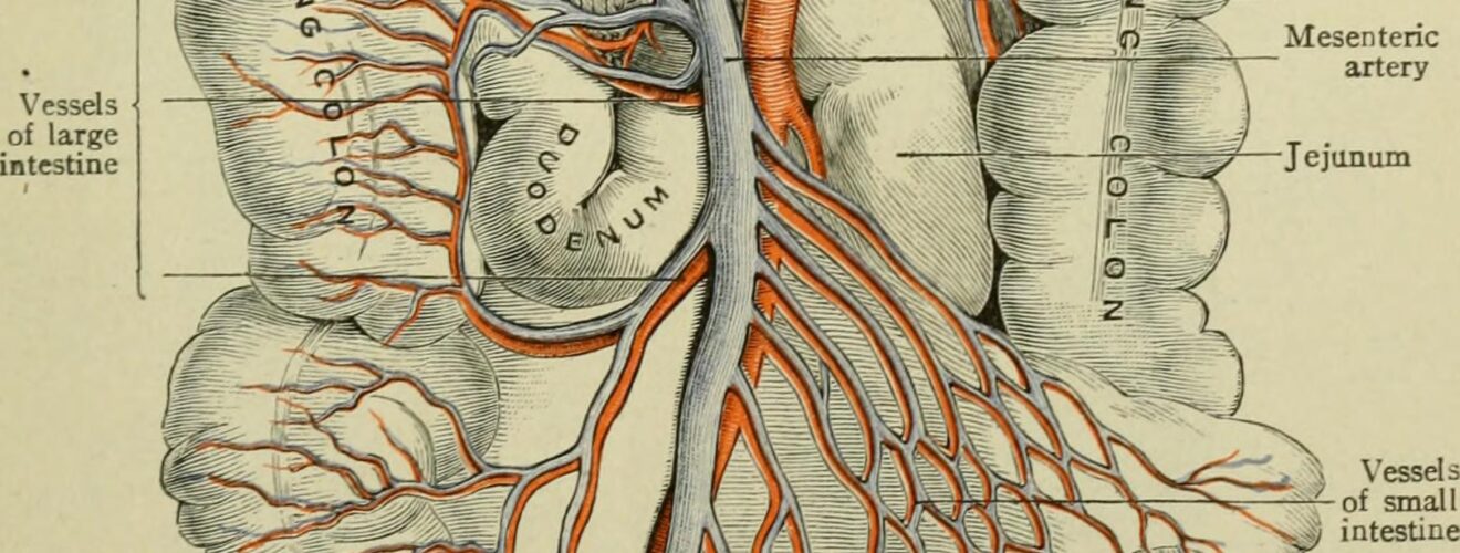- 下腸間膜動脈虚血の例あり。栄養領域の参考に