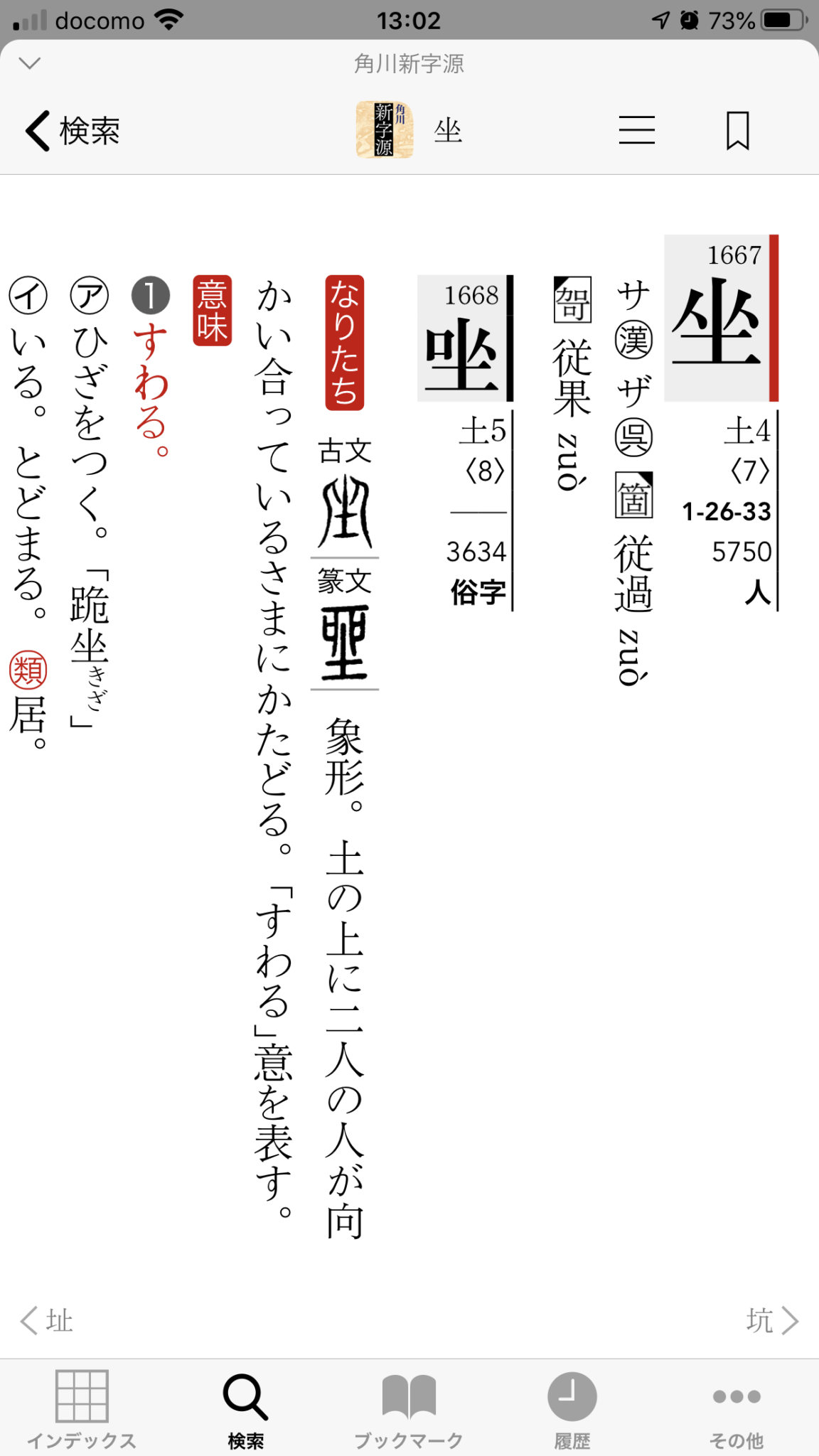 - 坐、座、挫の「土」は「人人」の間を上に貫く。