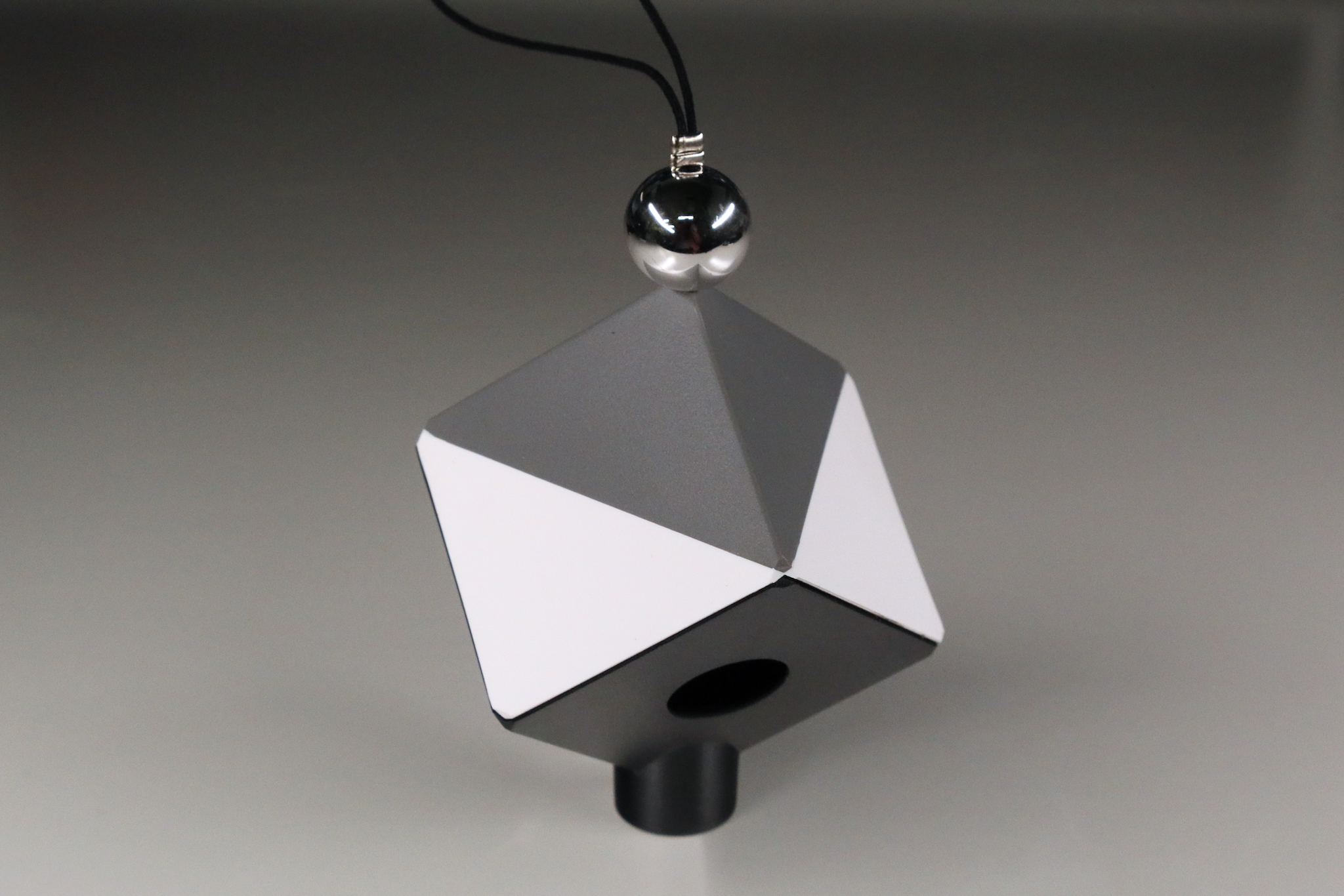 プラスチックの立方体は、白、ニュートラルグレイ(写真工学上の適正露出の基準になるグレイ)、黒の面があり、黒の面には絶対的な暗黒として使う孔が空いている。鏡面の球体は、照明の様子も移し込むためのもの。三脚に取り付けるためのネジ穴、被写体の近くに吊るためのストラップもある。