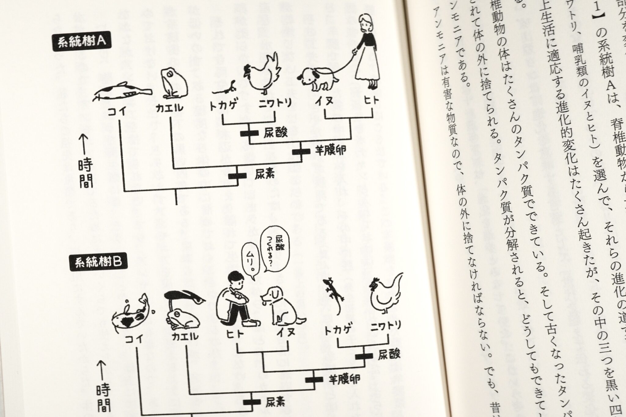 種の上下にも論が割かれる。系統樹の描き方1つで、ヒトが上に行ったり、平らになったりする。