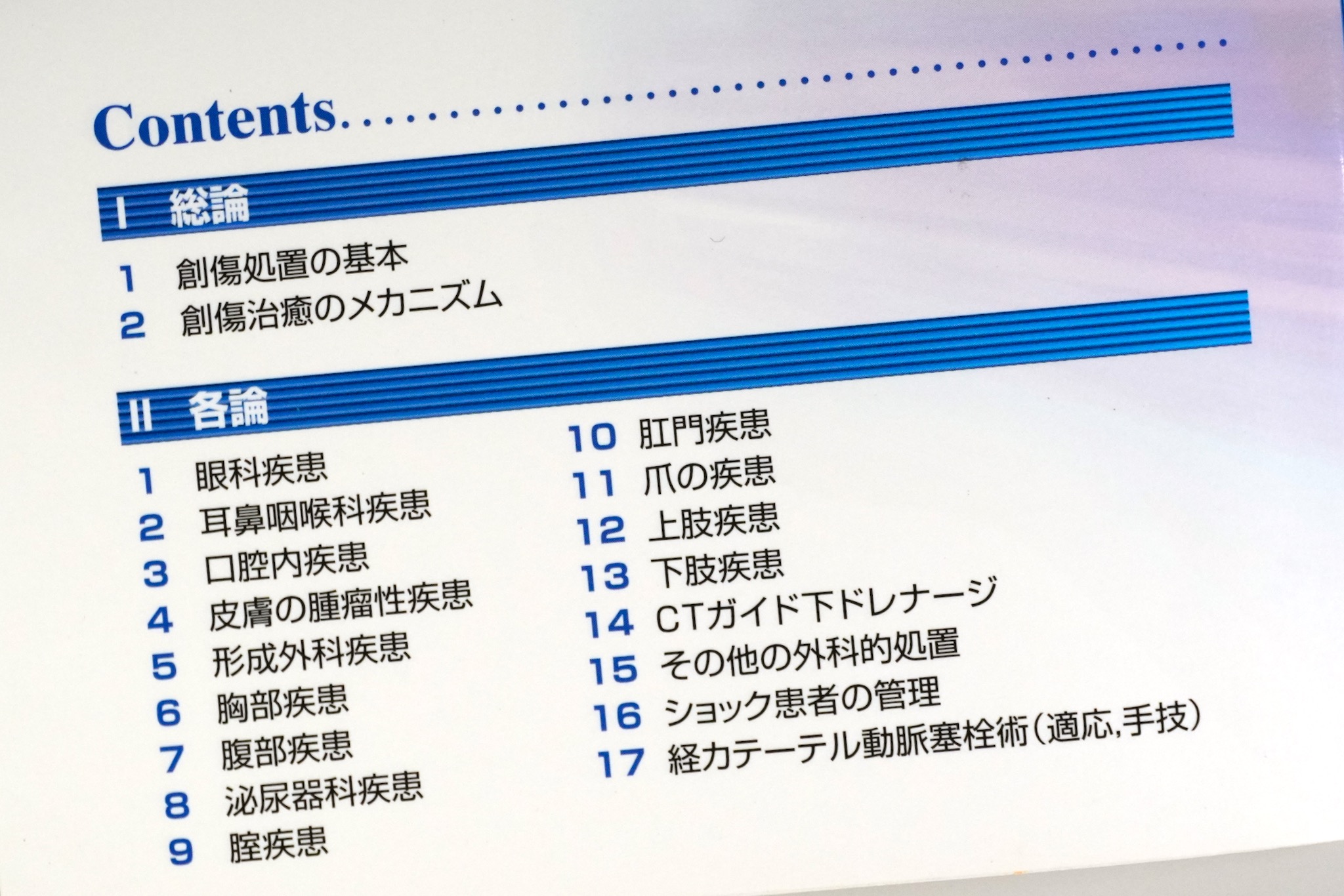 総論では、器械の持ち方、糸の結び方など、徒手的な手術の基本を学ぶ。各論では、部位別の手技を学ぶ。