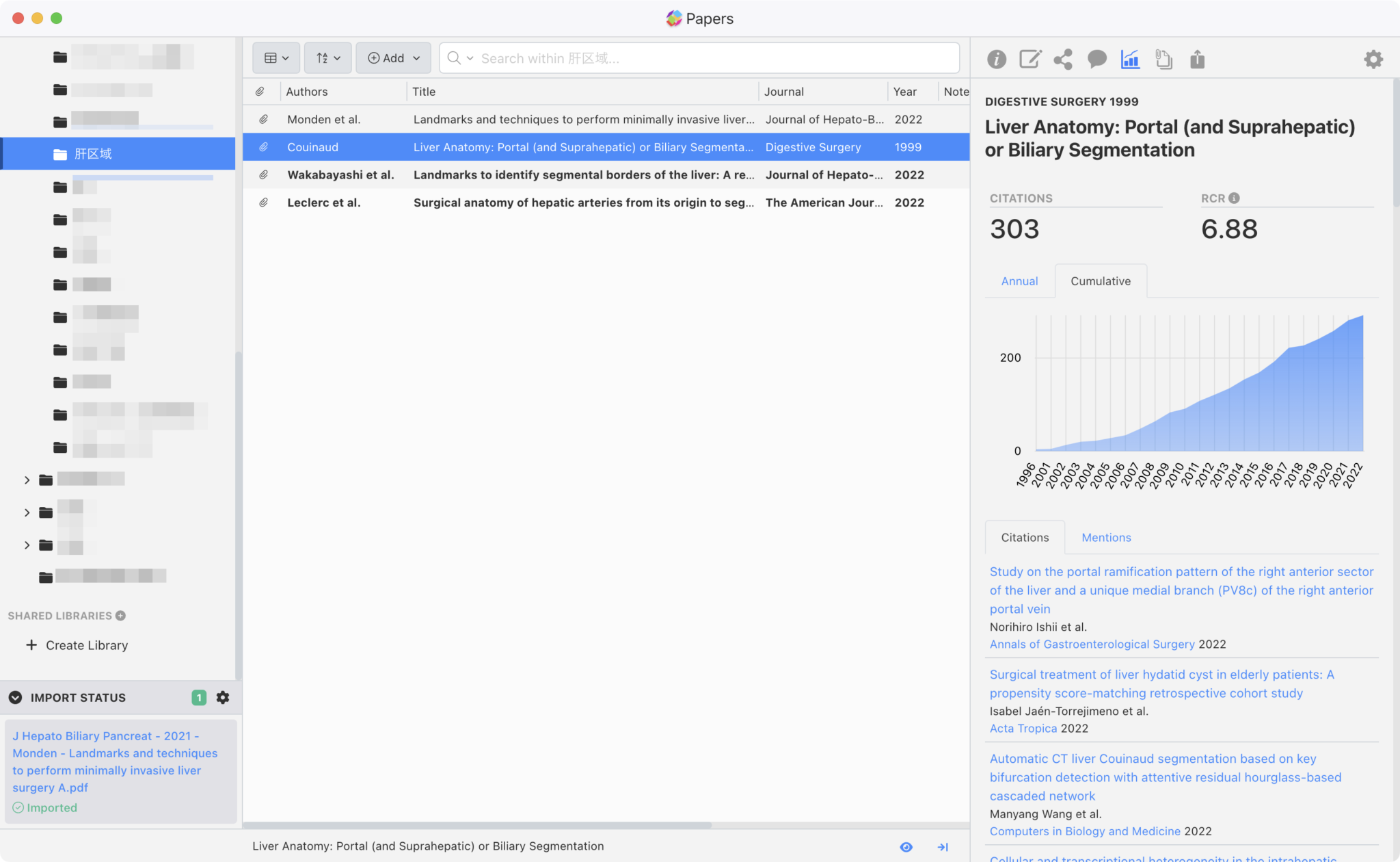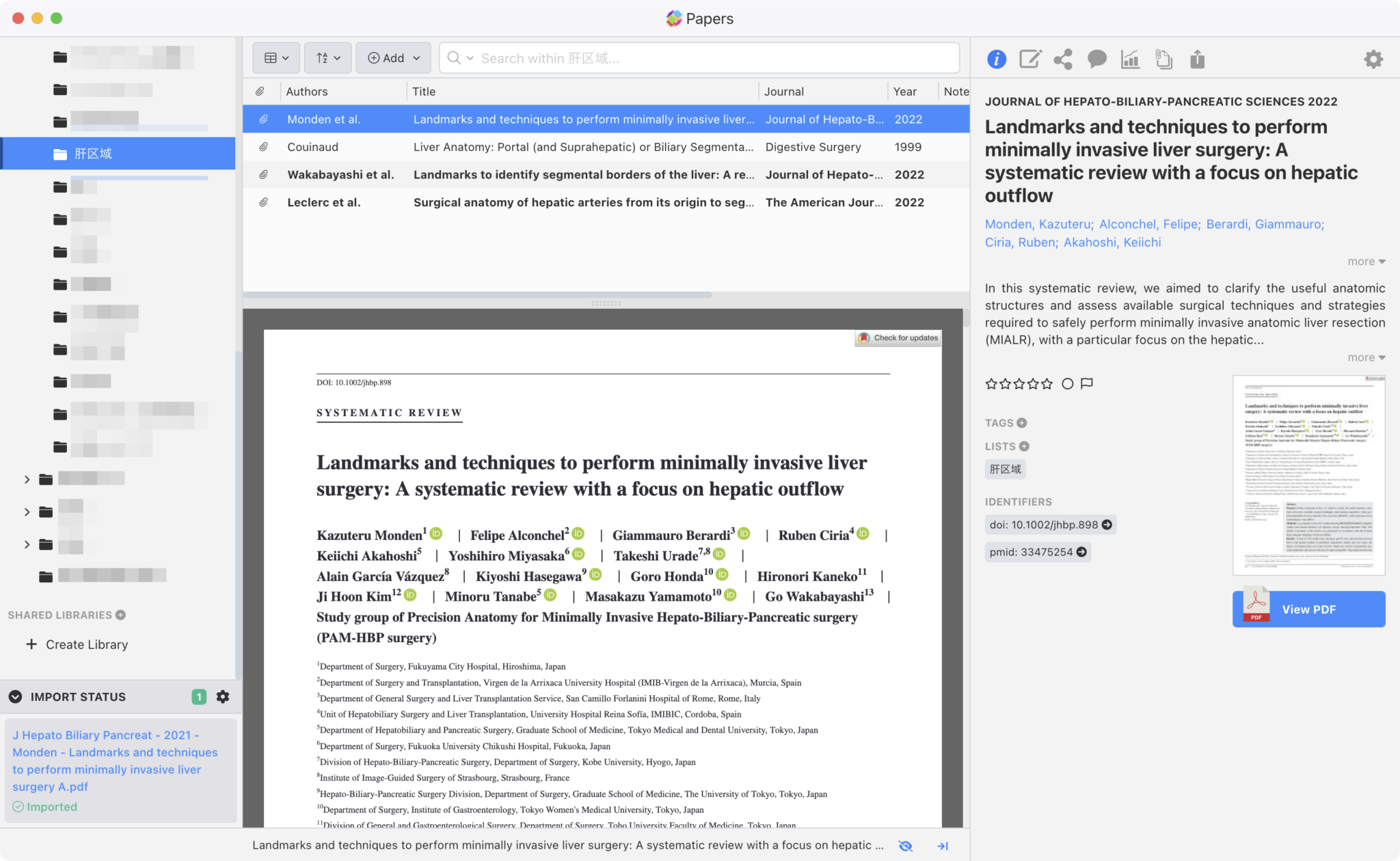 COI:評者はReadCube Papersのユーザーなのでバイアスは否めない。旧PapersからReadCube Papersへの移行に際し、Mendeley、本学に機関契約のあるEndNoteと比較検討して決めた。EndNoteをバージョン1から4まで使っていたことがあり、旧Papersバージョン1のときに移行した。