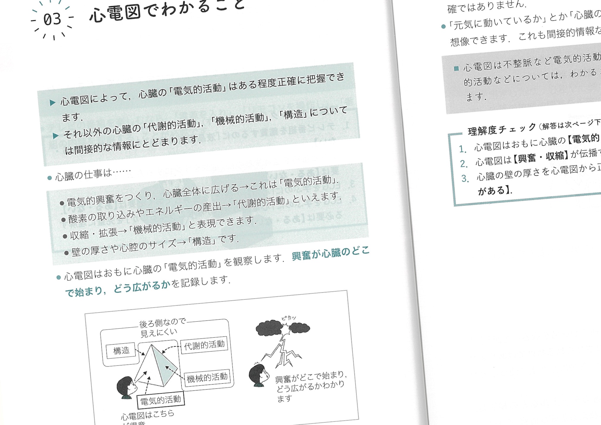 心筋の電気生理も、一応の説明はある。生理学の授業をかつてやり過ごせていたら、だいじょうぶだろう。