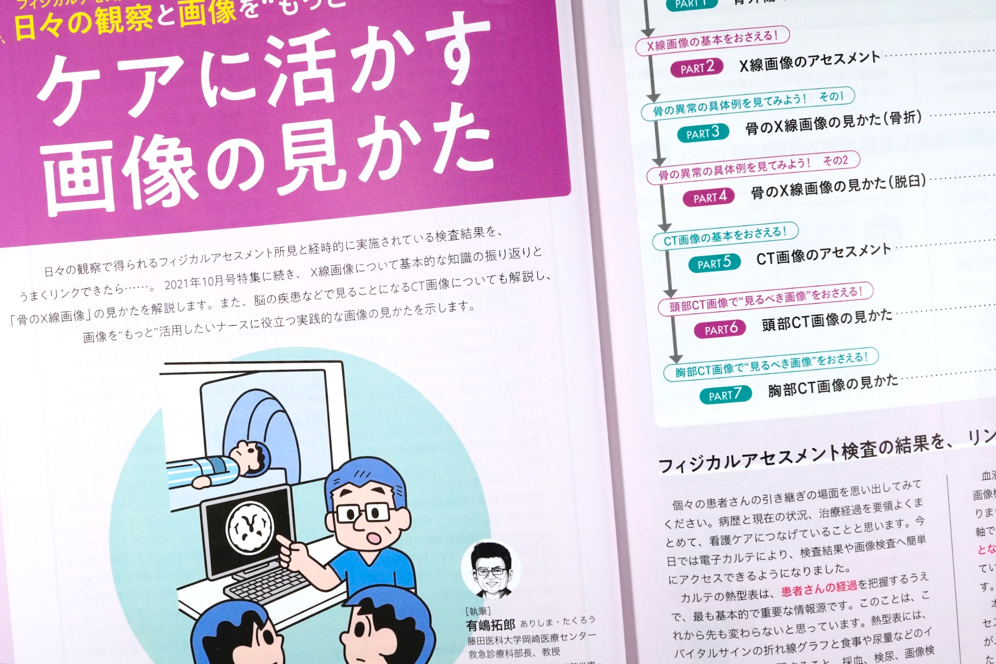 もうひとつの特集は、画像。去年の10月号の特集も画像だったな。園芸雑誌と同じで、季節もののようだ。著者も昨年と同じで、似顔絵の目つきが恐い救急の先生(写真だと恐くない)。