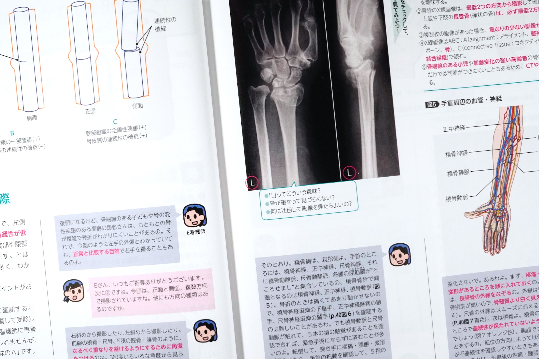 指導役の看護師と新人看護師との会話、ふつうの解説文、図と写真で、メリハリよく読める。まあ、指導役の台詞が、会話でそんなに話せるか? というくらい長いけれども。