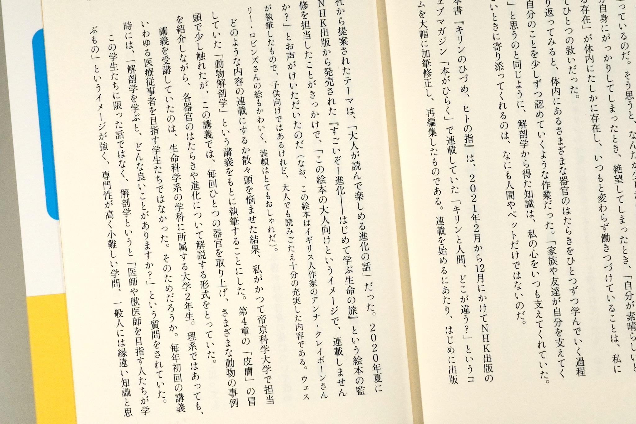この新刊は、NHK出版のサイトにあった連載記事の書籍化である。もとの連載に大きく加筆されて本になっている。連載の元ネタは、理系の大学での授業「動物解剖学」だった。それだけに、ライブ感がある。(連載のほうは、エッセンスだけのアーカイブになっている。)