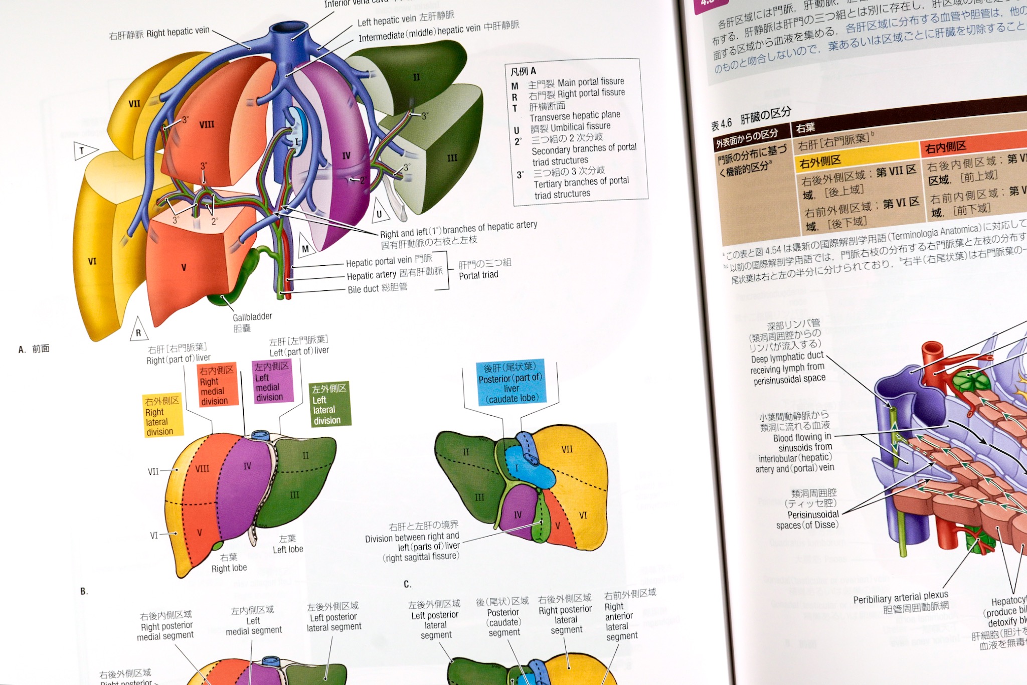 現代の解剖アトラスらしく、たとえば肝区域の図もある。内視鏡手術でしか気づかないような細かな血管やバリエーションも記載されている。それらの図の多くは初期の図であり、本書が当初から精密だったことを物語っている。
