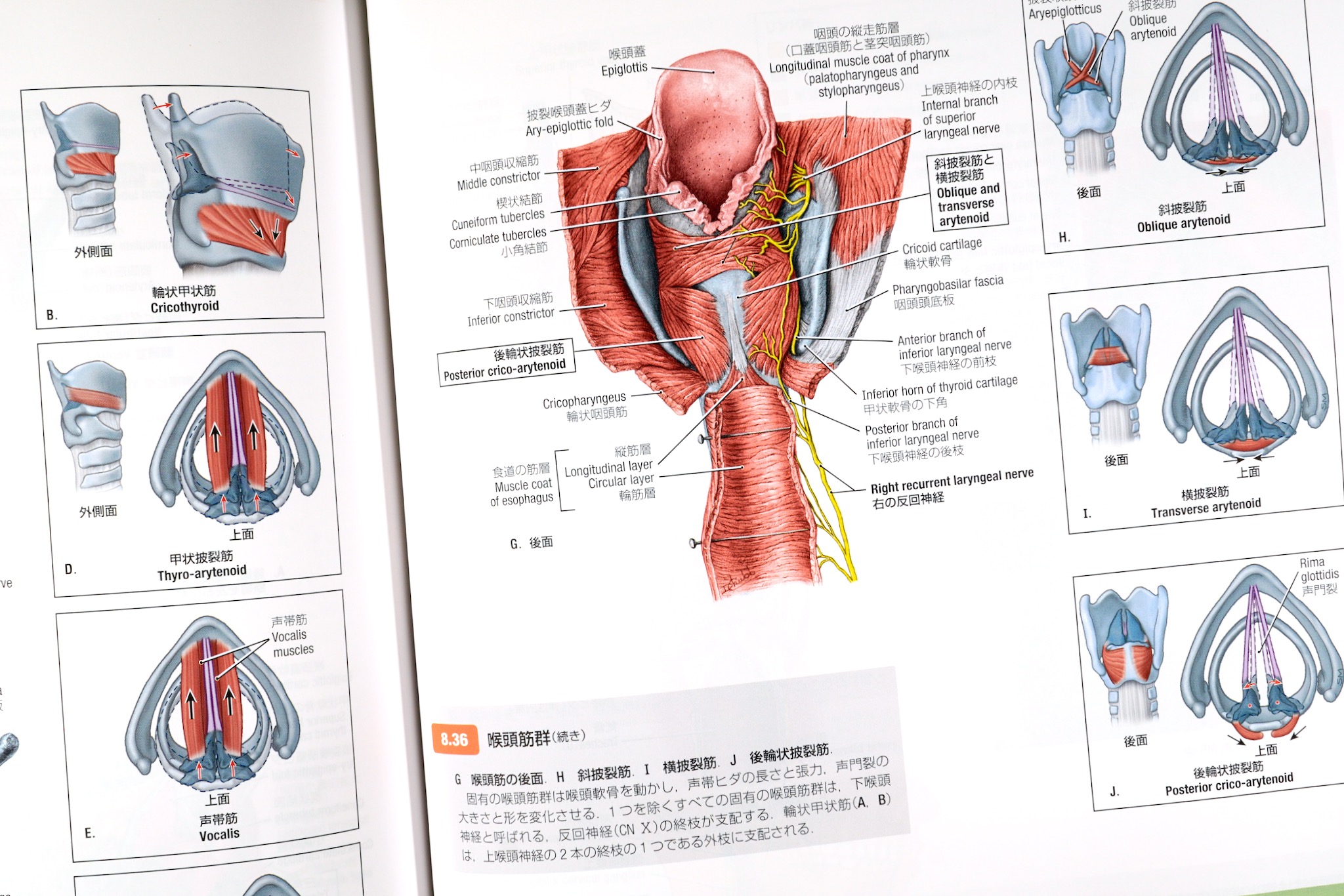 喉頭の図、8.35Bと8.36Cは、立体感が掴めない。