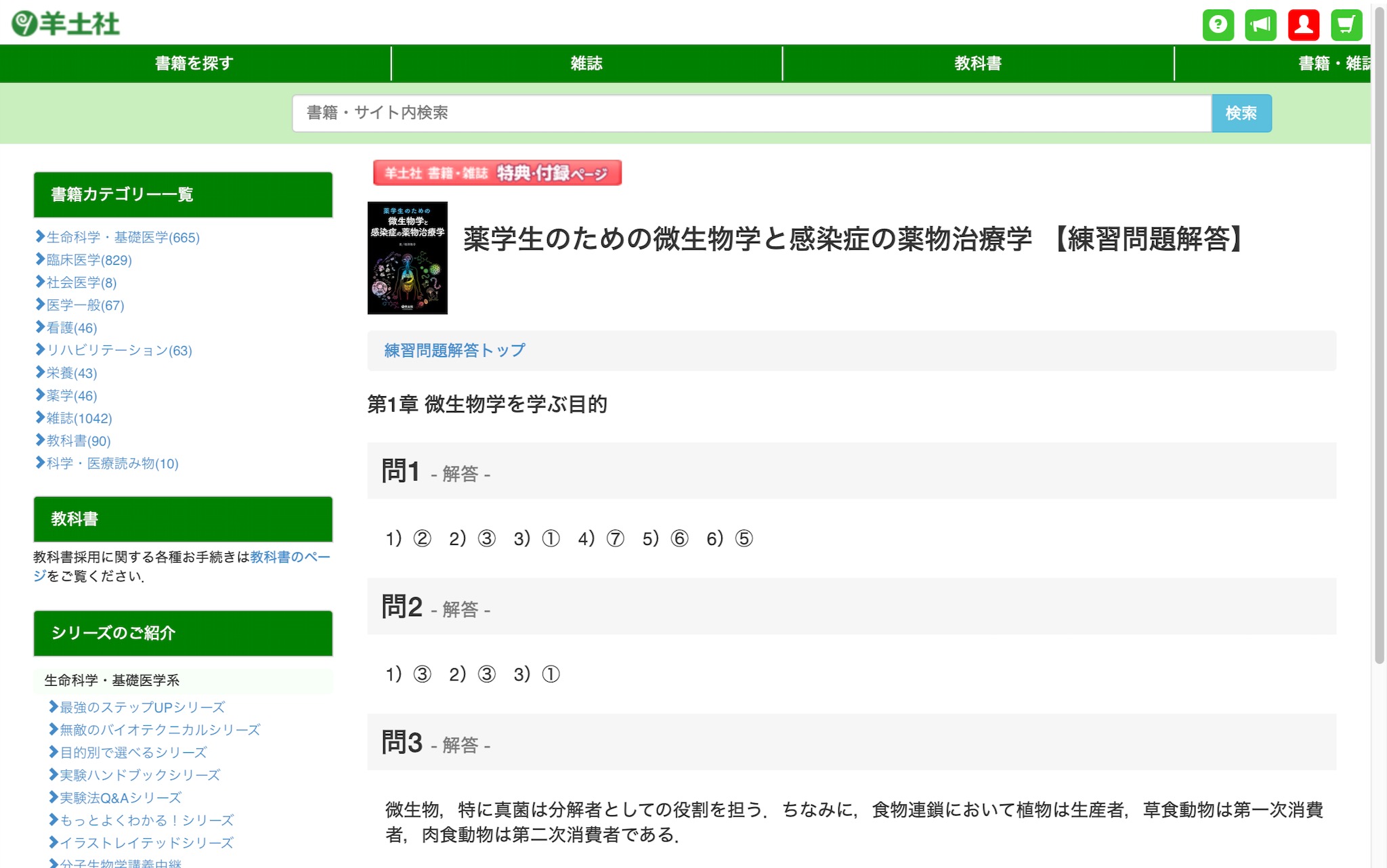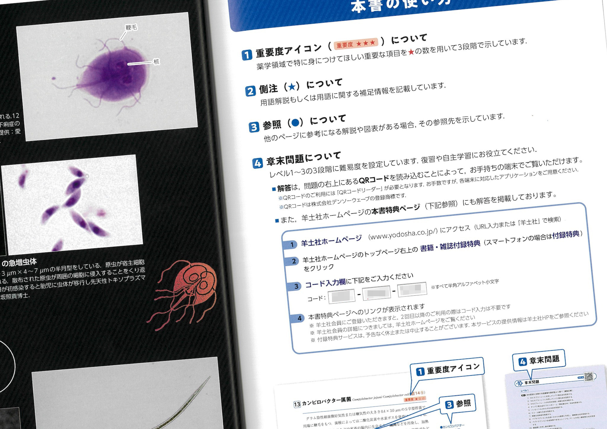 授業で使うテキストらしく、「使い方」から始まる。薬学領域での重要度に応じて、★☆☆〜★★★が所々に付されている。★のあるところを説明できるようにしておけばテストはOKというわけだ(未保証)。羊土社のサイトには、練習問題の正解がある。