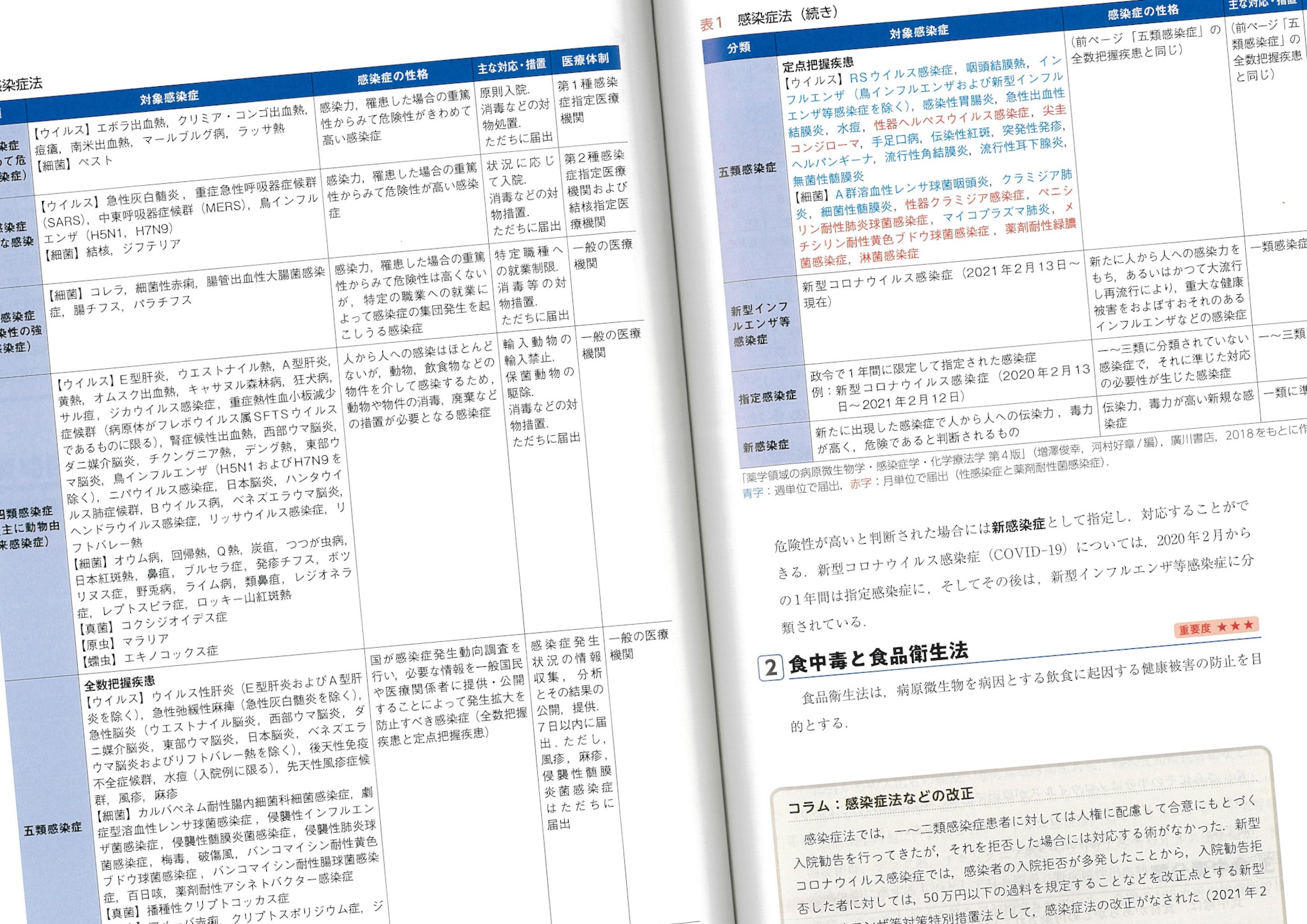 新型コロナウイルス感染症後のテキストらしく、それに対応する内容がおさえられている。感染症法、mRNAワクチン、アナフィラキシーなどに関する記述をみることができる。