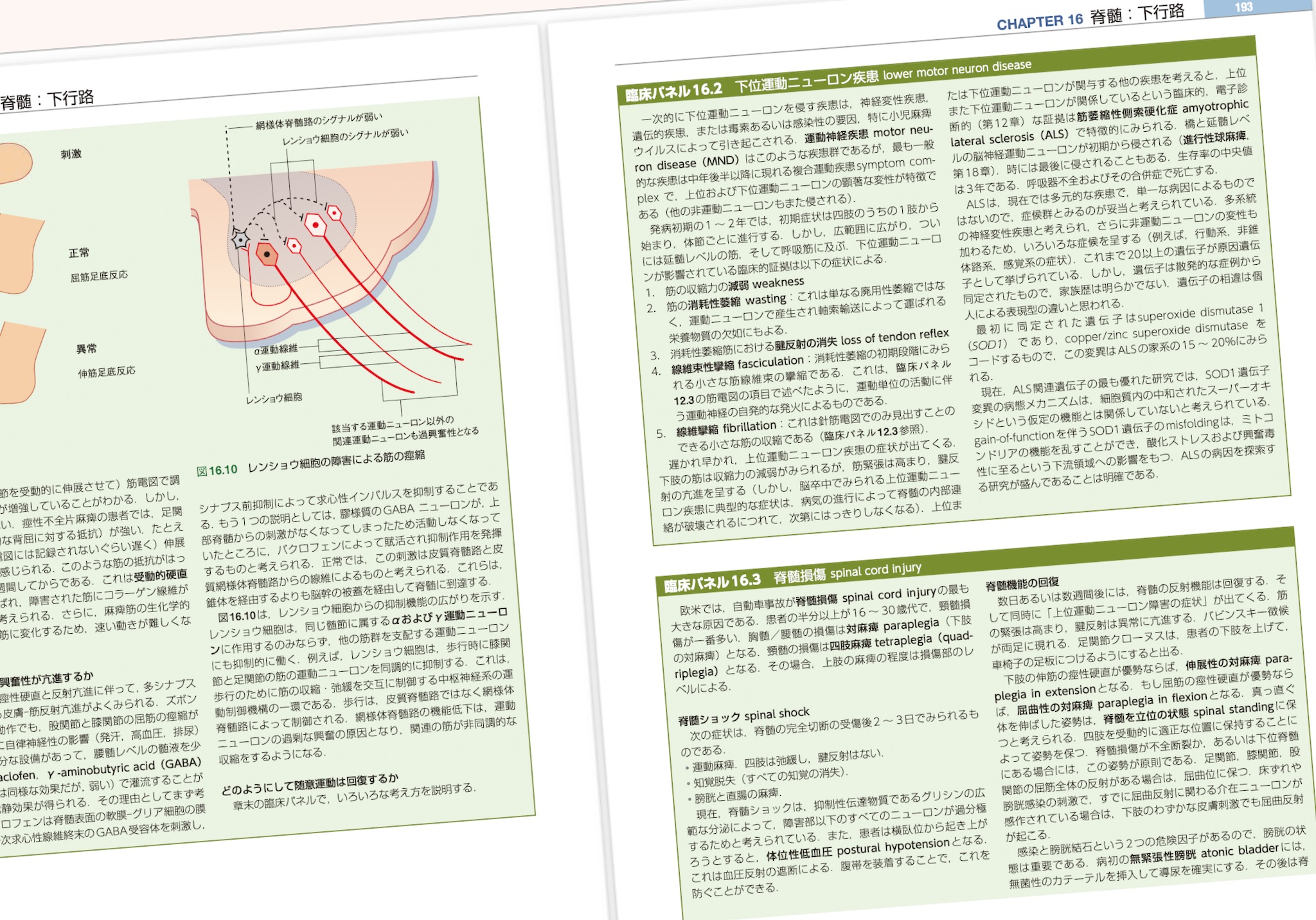 原著の方でも、書籍を通してみたときに、ラフエッジが残っているようだ。たとえば、上の文章の「(後述)」の参照先が遠すぎてどこだかわかりにくい。また、感覚神経の一部が前根から脊髄に入るという記述。原著第6版にはあり、第7版で削除されたのだが、そこを参照する部分が他の場所にあってオーファンになっている。そして下行路の図に間違いがある。訳注で指摘されているが、図自体を修正したらわかりやすくなったのではないだろうか。