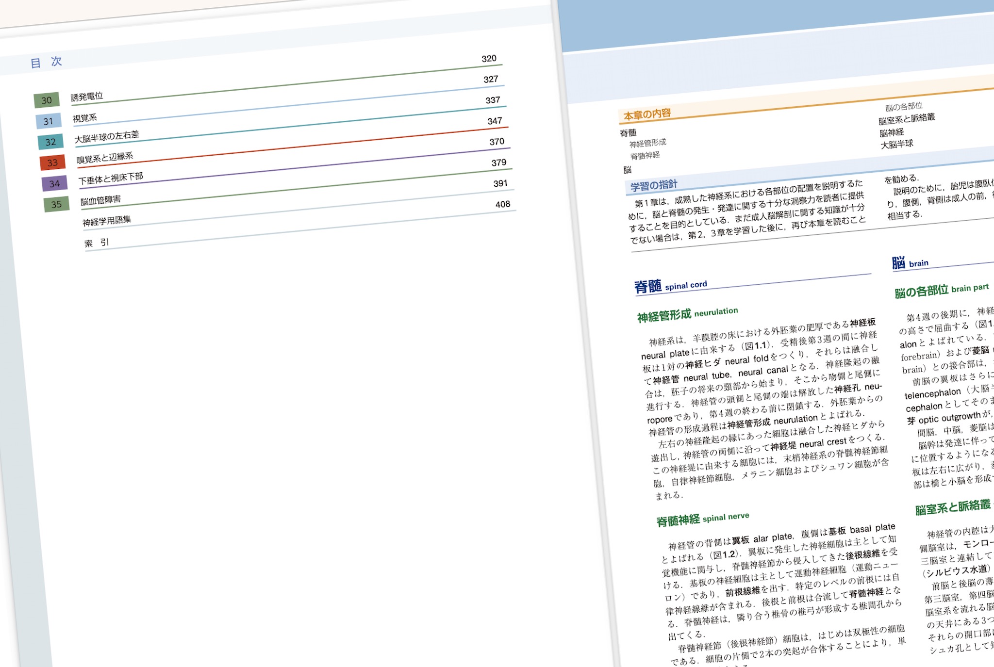 ベースが神経解剖学なので、目次も概ね神経系の形態に沿っている。神経解剖学の授業で参考しやすい。神経科学や臨床から形態が意味づけられているので、理解がはかどるだろう。