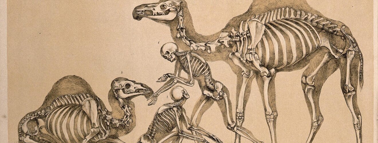 WEEK1 Day2 神経系, 発生, 背部, 骨学実習 by 村上 徹 · 公開 2022年10月5日 · 更新済み 2025年11月22日 Skeletons of two men standing and kneeling between the skeletons of two camels, one of which is seated. Lithograph by B. Waterhouse Hawkins, 1860. 午前中は講義、午後は骨学実習とその前説。朝は8:40から。遅刻しないこと。 神経系 発生学:総論と初期発生 背部の実習の前説 骨学実習の前説 骨学実習:概観、体幹、上肢 骨学実習には、少なくとも『グラント解剖学実習 改訂版』を持ち込むこと。他、教科書とアトラスも。班に一冊以上。席順は共有ドライブにある。 関連