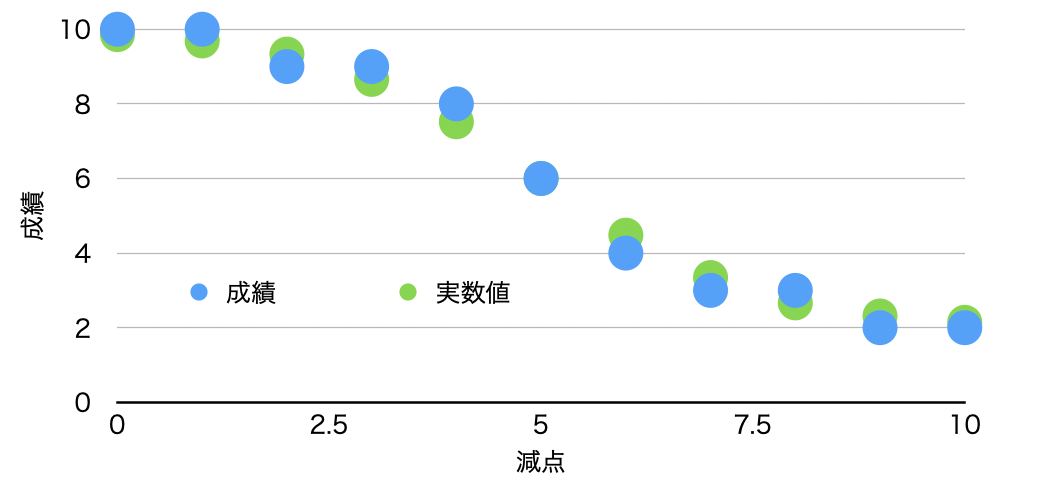素点 = Σ (配点 × 得点率) / Σ 実施済配点
