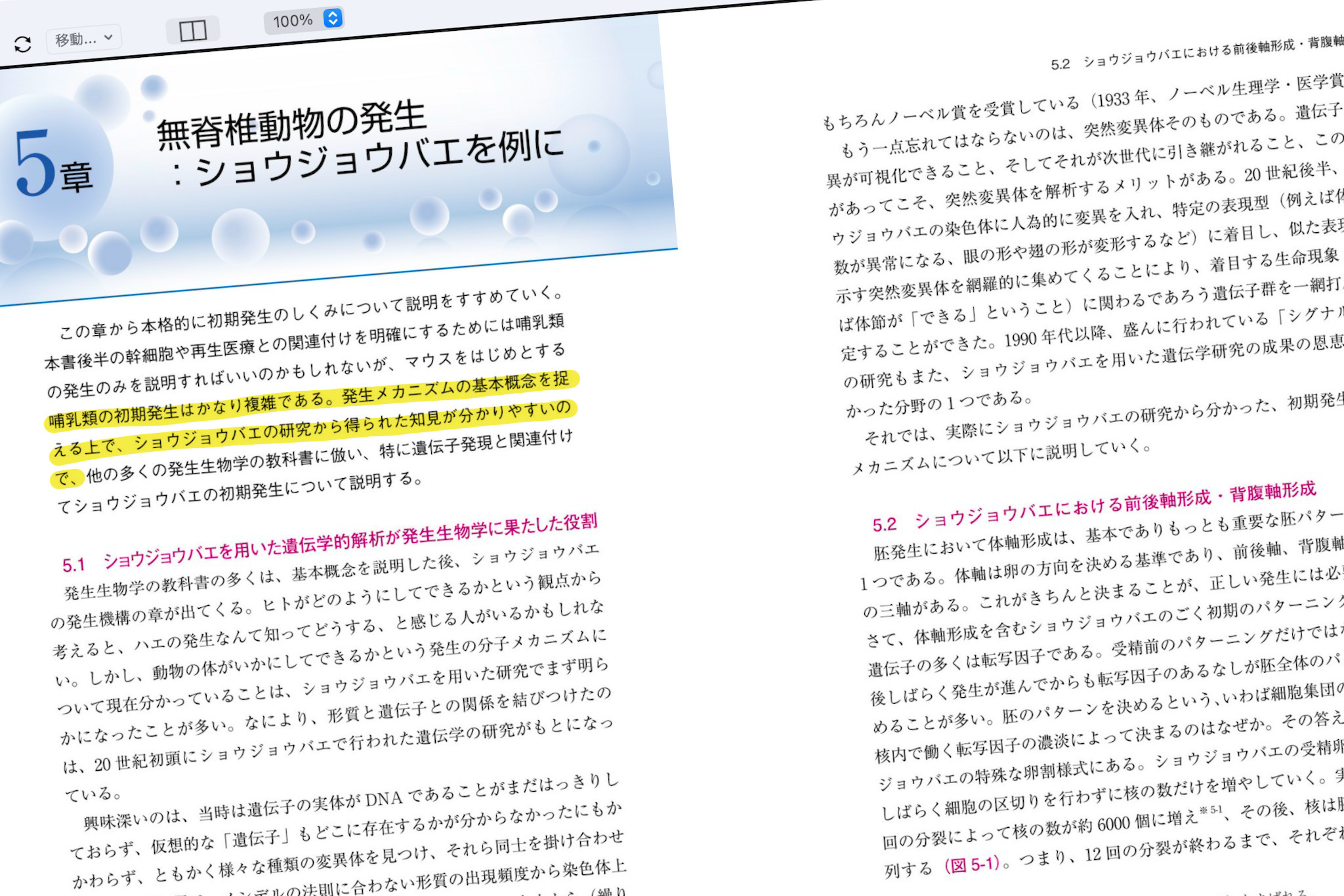 語り口が、学生によりそっていて優しい。各章の冒頭にそれが現れている。「いきなりは難しいから簡単な話しから」と、ショウジョウバエの発生の話しが始まる。この一文がもしなかったら、読者は「なんでショウジョウバエ?」と戸惑うだけかもしれない。「単純な生物モデルから研究を始めて、相同性をふまえて、複雑な生物種を洞察する」という生物研究全体のストラテジーも理解できるだろう。