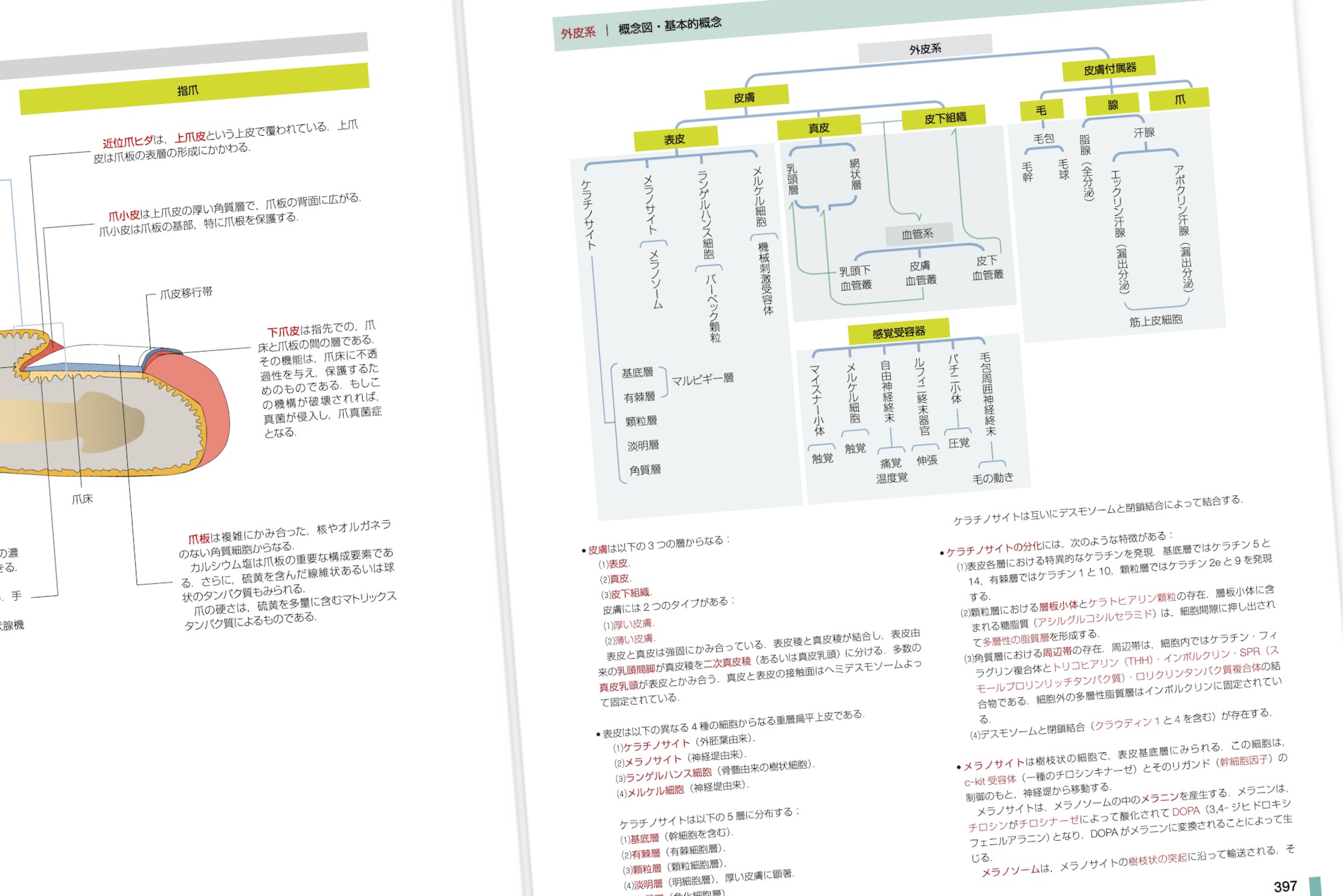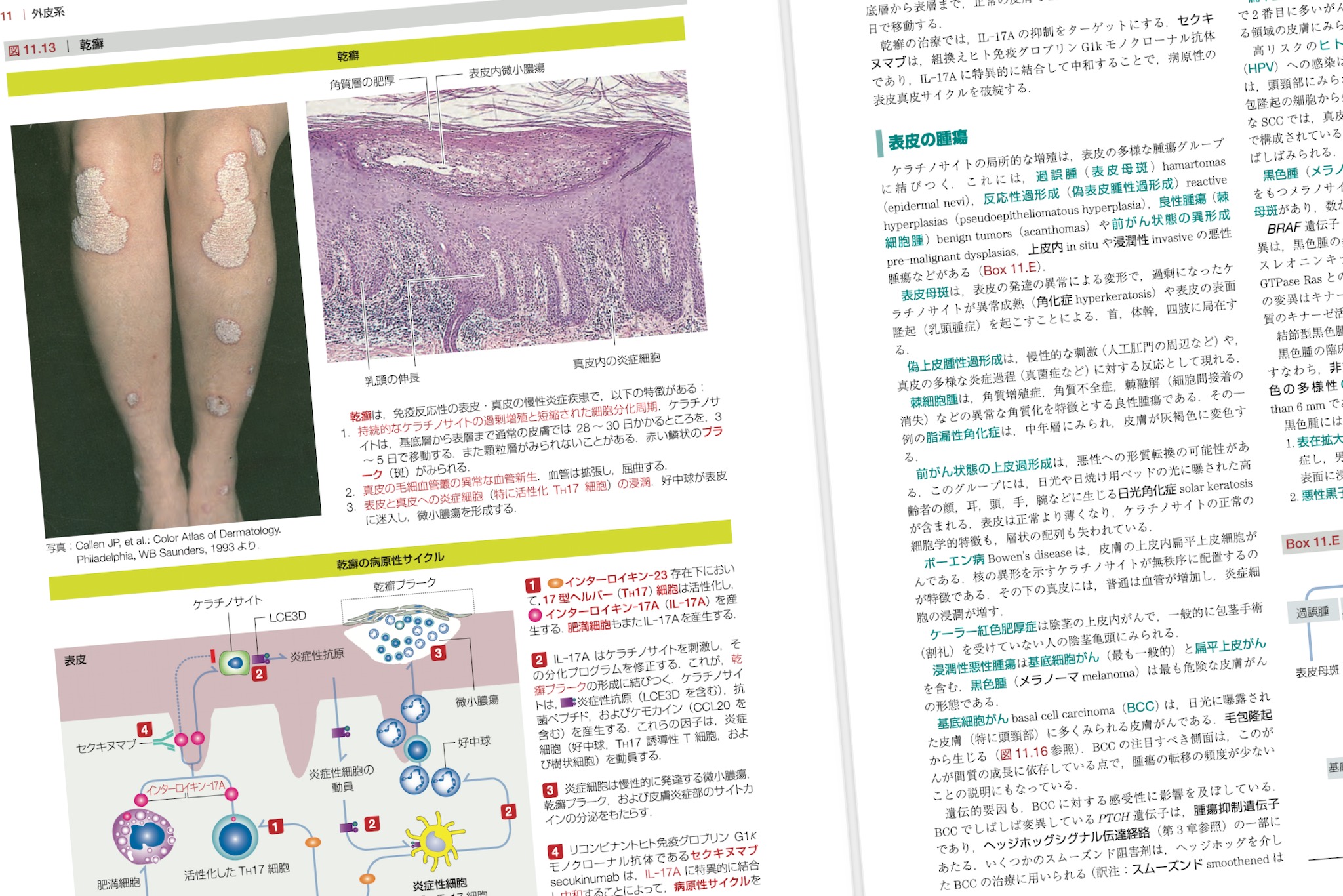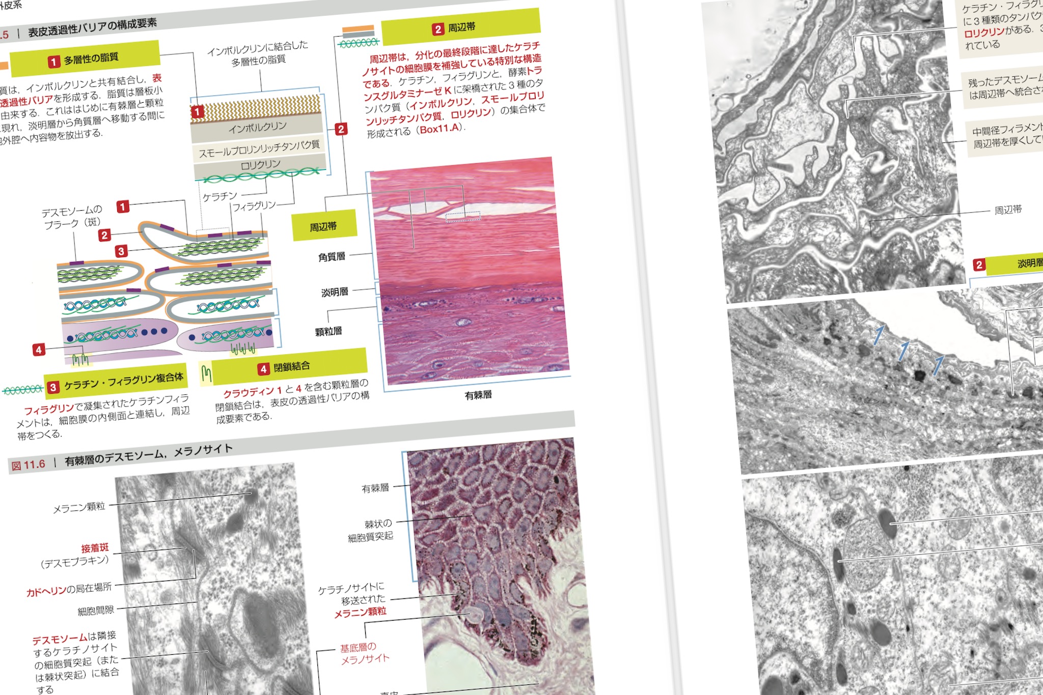 皮膚の臨床関連では、創傷治癒や代表的な疾患が取り上げられている。