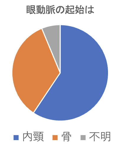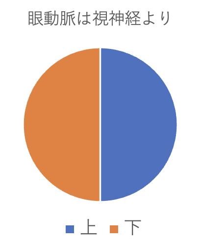 実習書の図では、内頸より起始し、視神経の外側下方を走行してた。