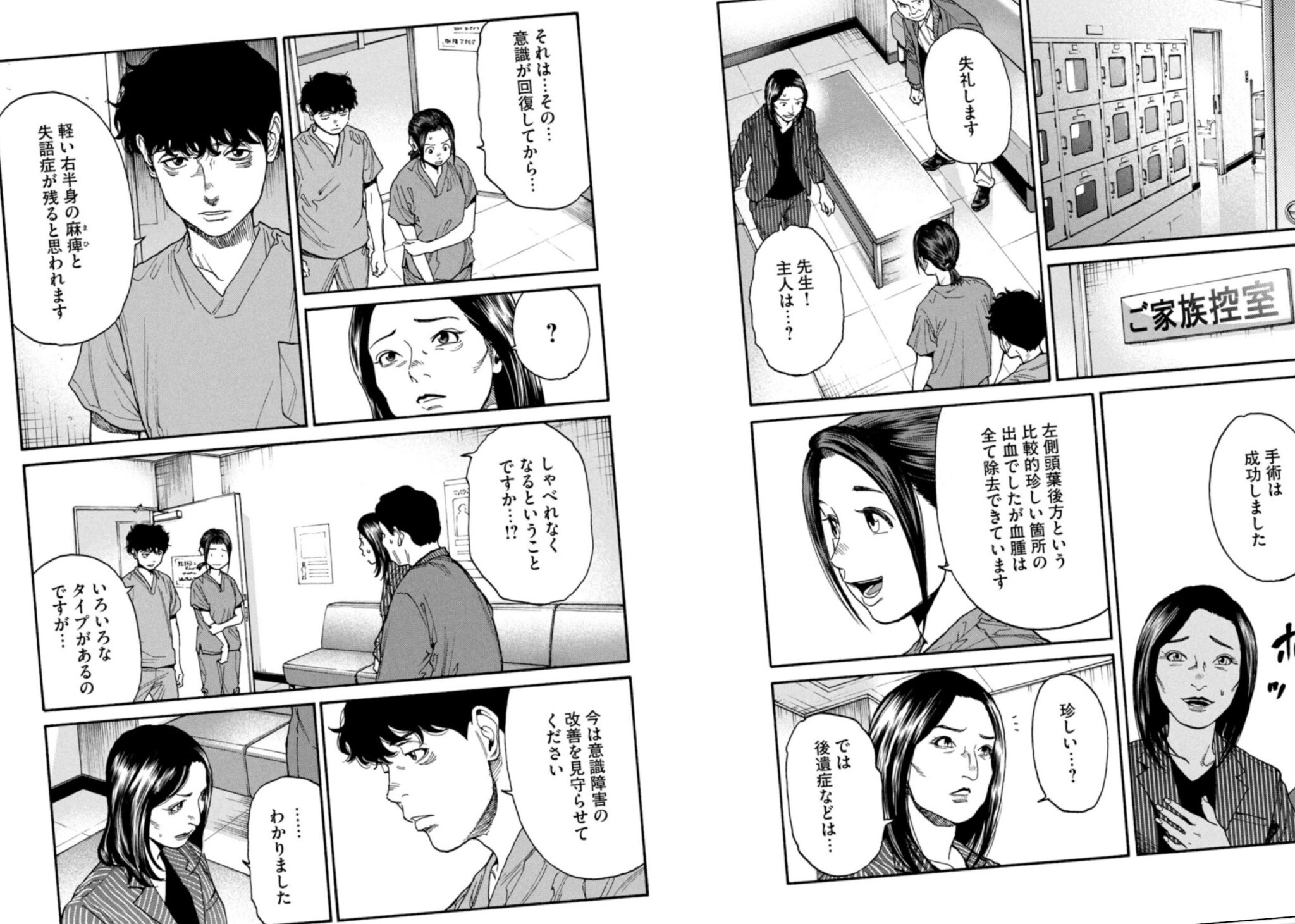 術後の説明では、左側頭葉後方に傷害があることから推定し、右半身麻痺と失語症と後遺症として残るとされた。