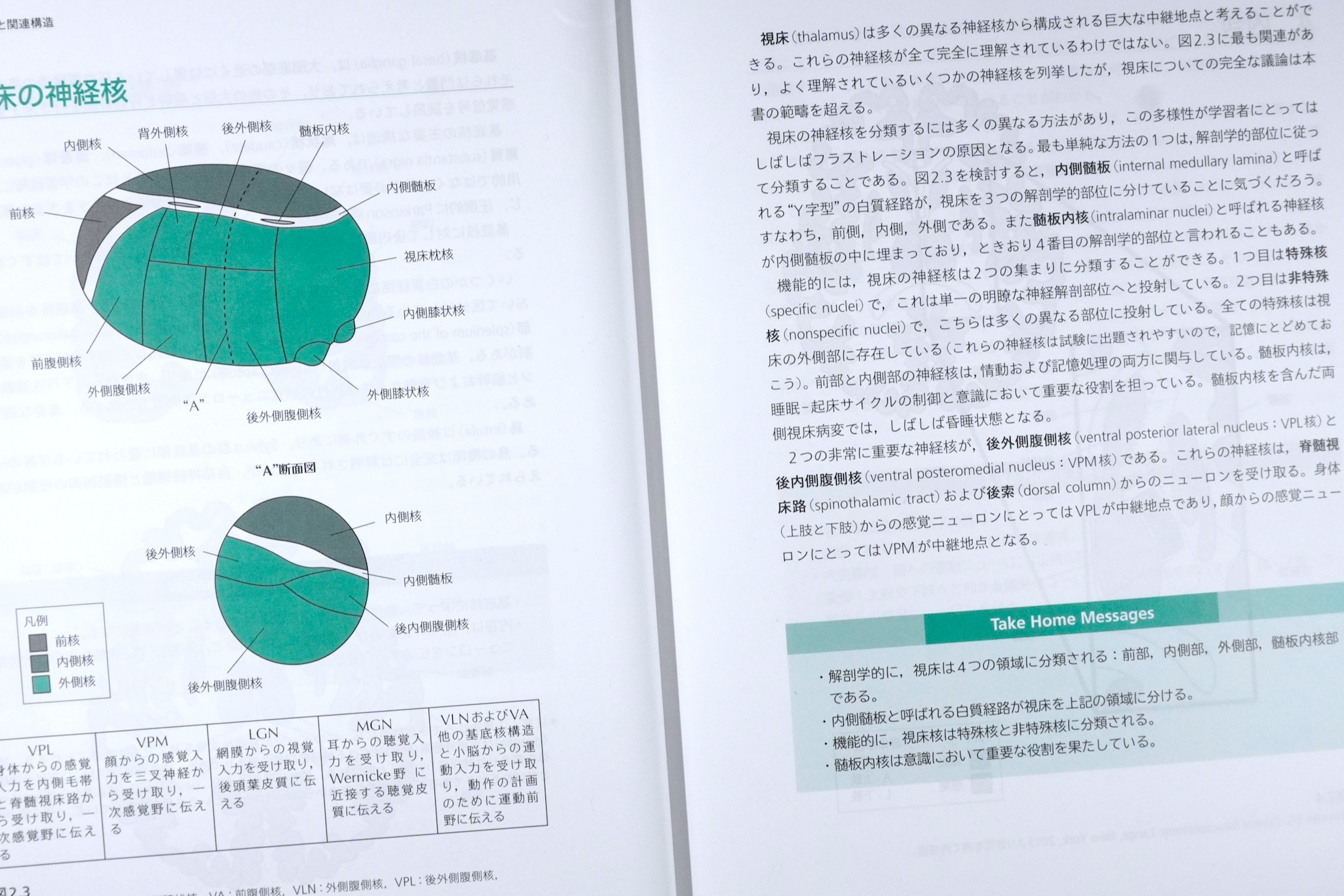 視床の核も、おおきく4つに分類するだけ。「完全な議論は本書の範疇を超える」と早々に見切りがつけられている。