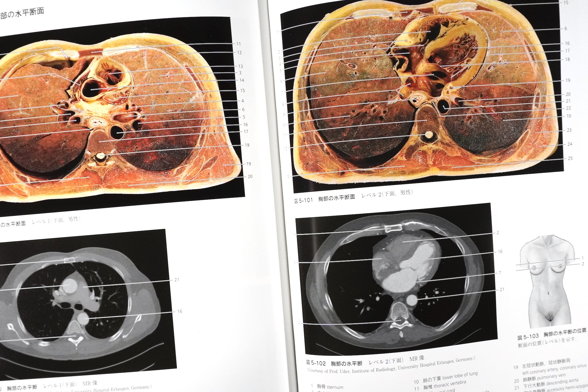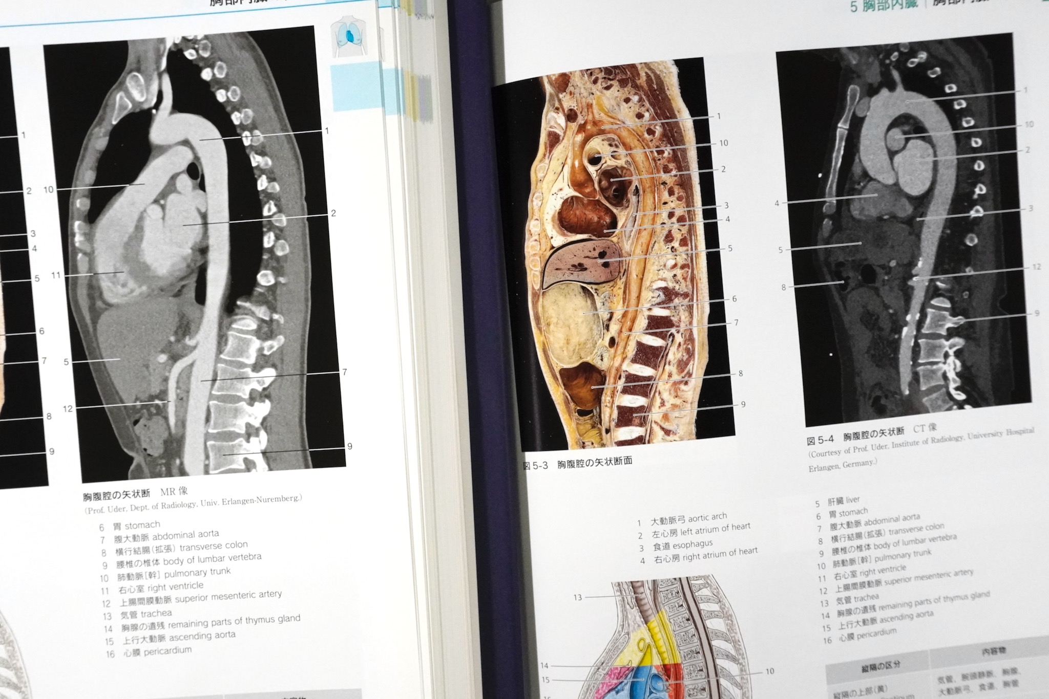 最近の改訂では、画像解剖学や体表解剖学にも重点が置かれている。画像の数は少ないが、解剖標本といっしょに並んでいるのが利点だ。