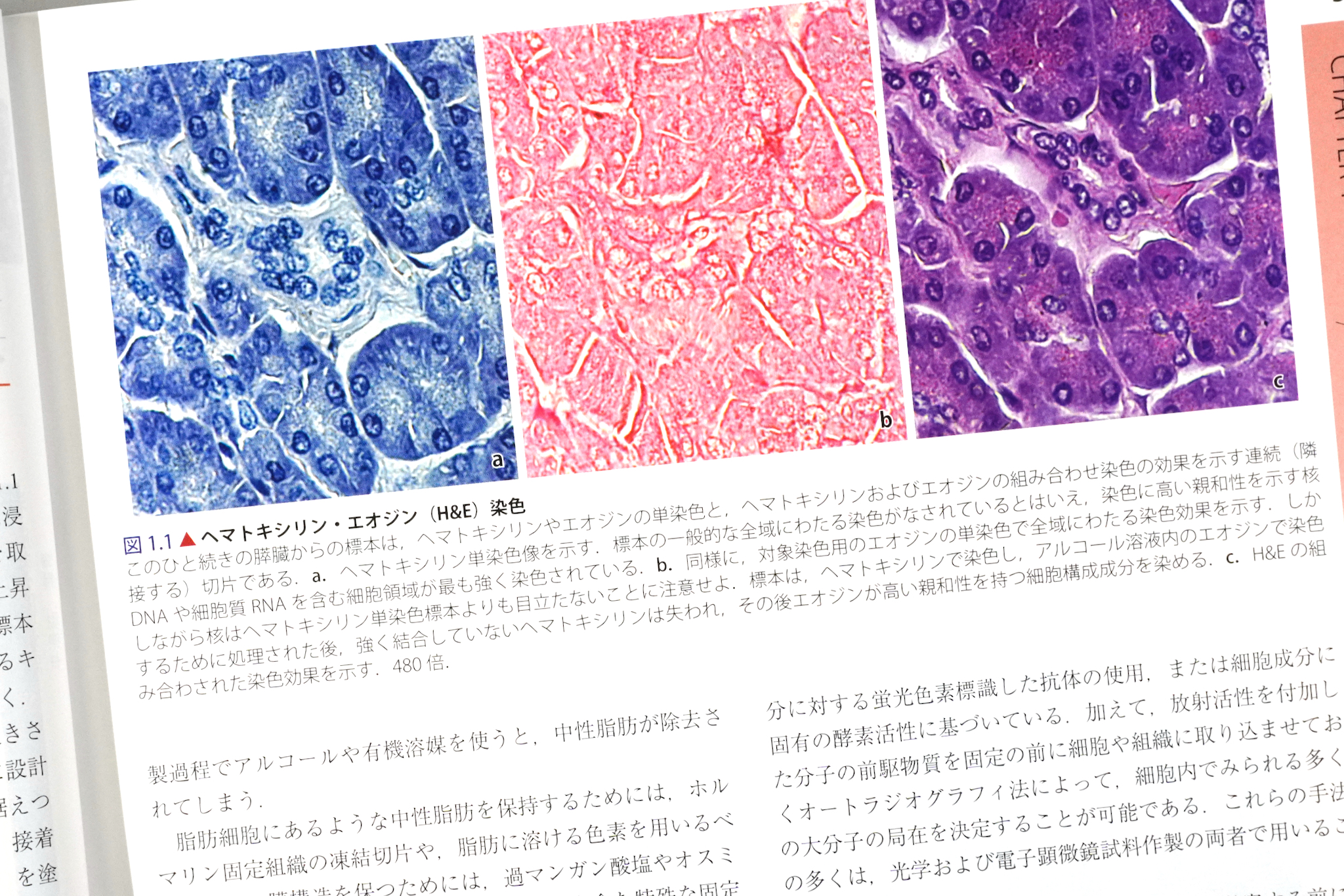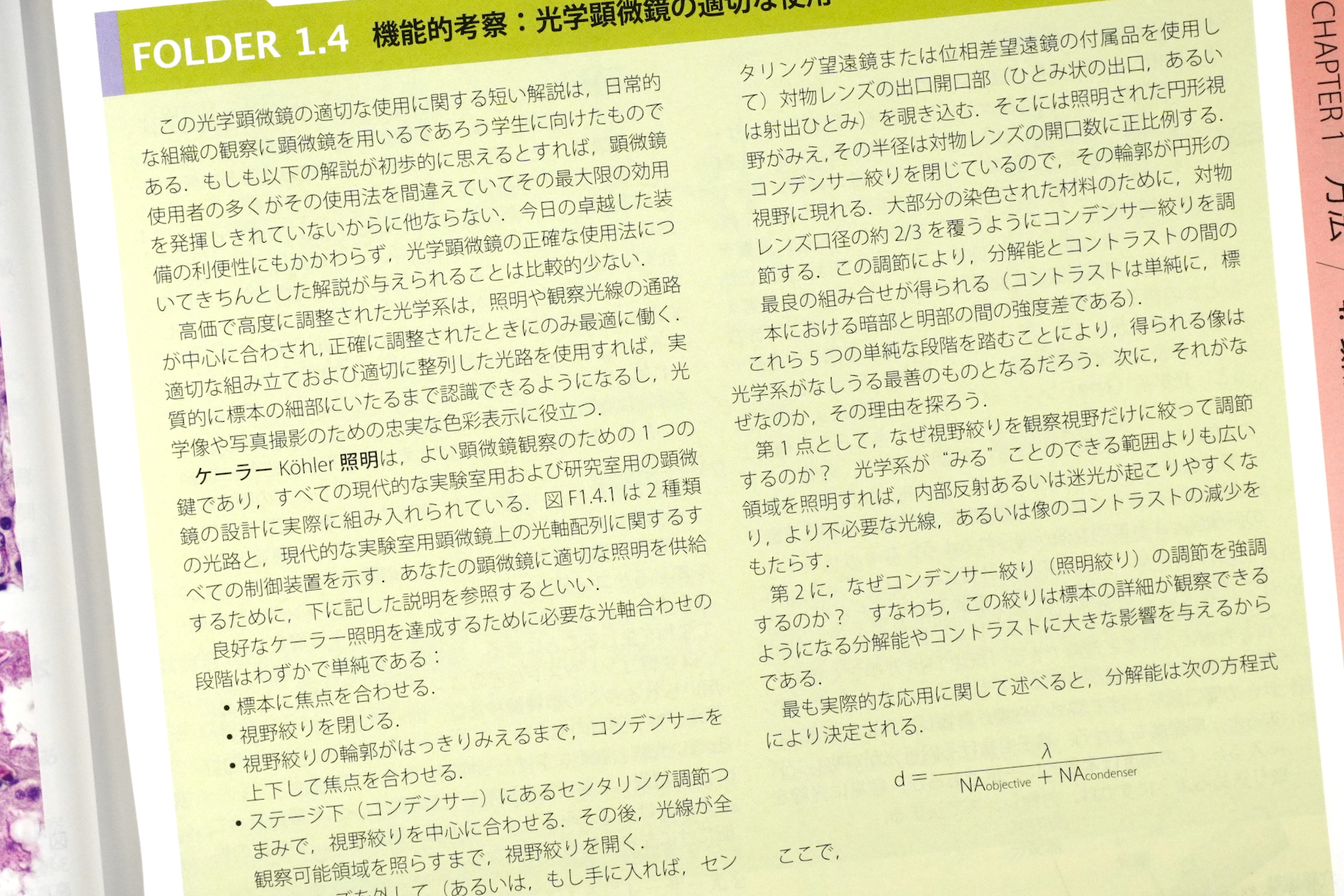 本書の特徴は、読んで学ぶための教科書と、顕微鏡写真を見て学ぶためのアトラスとが統合されていること。座学で学ぶときも、組織学実習で参照するにも使える。