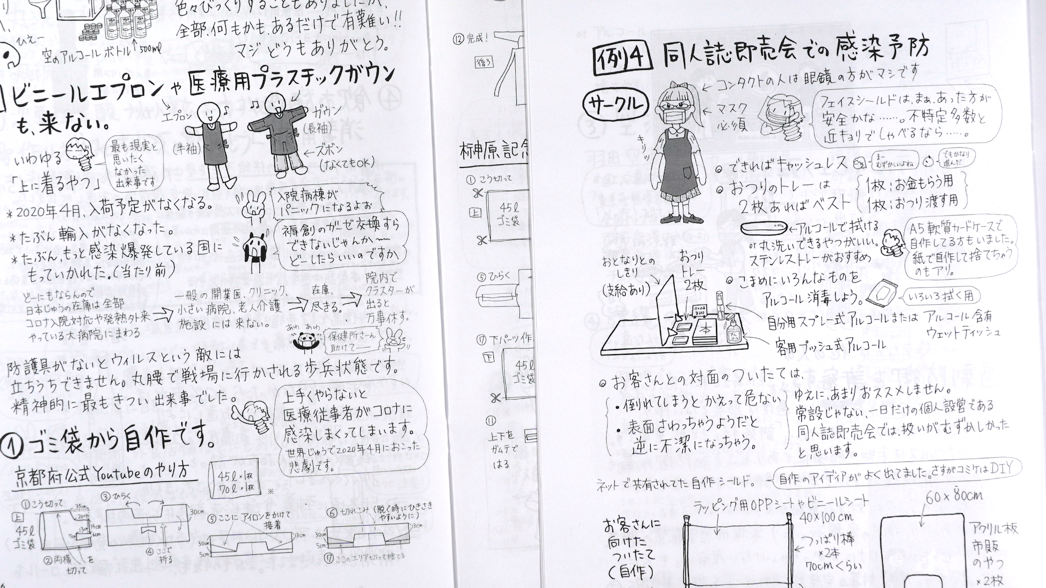 『物資不足の巻』は、2019年末の新型コロナの始まりから、マスクもアルコールも防護具もなくなり、最初の非常事態宣言が発令されるまでのまとめ。『街も人も動き出すの巻』は、非常事態宣言が解除され、各業種のガイドラインができ、感染対策をしながら人々が活動をはじめた2020年の前半まで。このあとまだ、非常事態宣言は繰り返されるし、デルタはくるし、ワクチンができて大慌てで接種するし、話は続くはず。まとめて一冊の同人誌になる予定という。現在はなんとなく新型コロナがなくなったような感じになって数年前のこともわすれそうだが、それまでの記録が一冊になっていたらいいと思う。