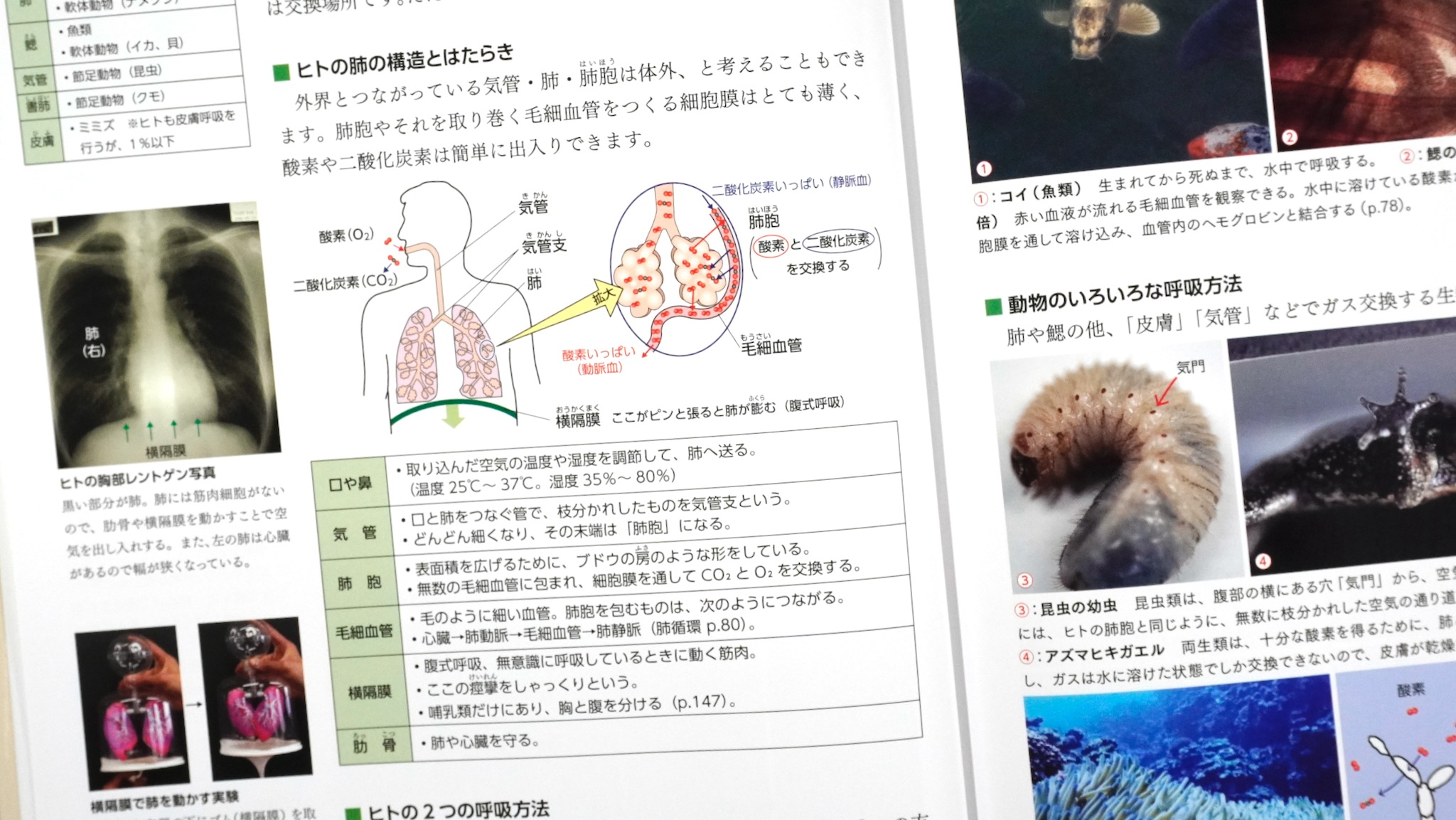 肺のことは全くない。呼吸の項目はあるが、いきなり反応経路の話で、酸素がどこからくるのかもわからない。