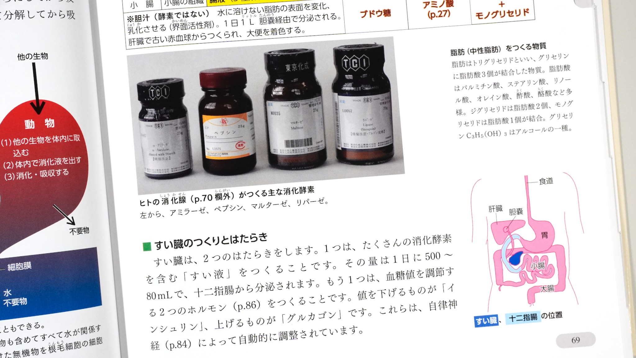 膵臓は血糖調節のところにでてくるが、消化腺としての事はスルーされている。