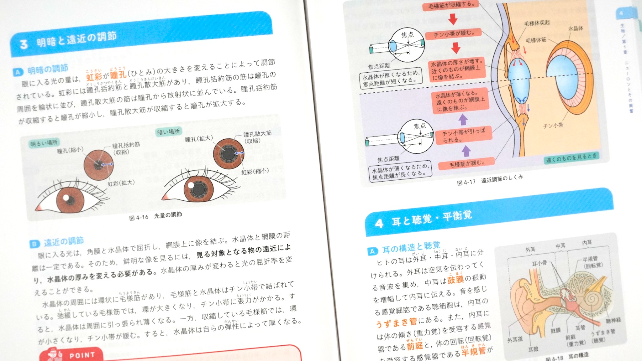 確認してみた。中学と高校の生物学の参考書だ。確認したポイントとして、医学科で学ぶ解剖学に影響するかどうかの観点から、いくつかの臓器・器官を選んだ。いずれも、個体と種の存続にチョー重要なはずで、省略されるなどあり得ないと考えた。