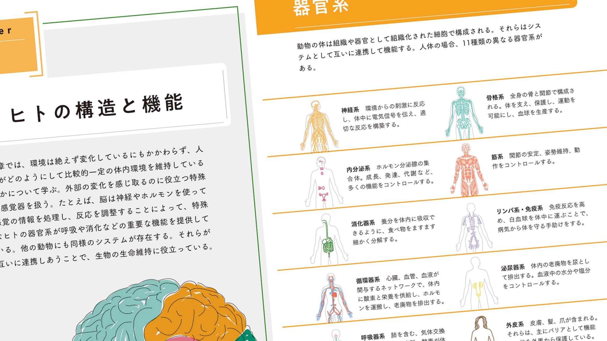 生物学の入門書だと、遺伝子だ反応経路だとなるところ、ヒトのことがちゃんと押さえられている。そこのところをみてみよう。解剖生理学のまとめで、いくつかの器官系がとりあげられる。