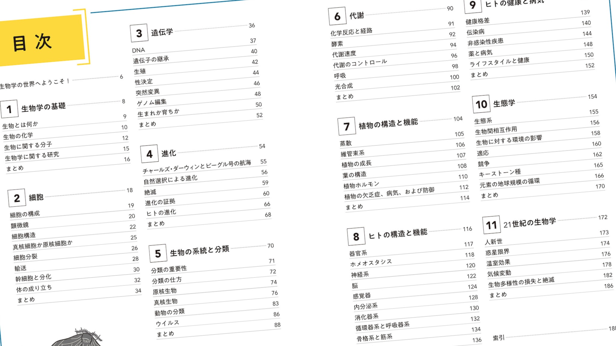 生物学は範囲が広いので、全体のパースペクティブをとることが大切。本書は、分子や細胞に始まり、エコロジーから環境まで、スペクトルが広い。そしてウエルバランスだ。目次にそれがみてとれる。必要なところ、面白そうなところを、難しい本で(難しくなくてもいいが)続けて学んだらいい。