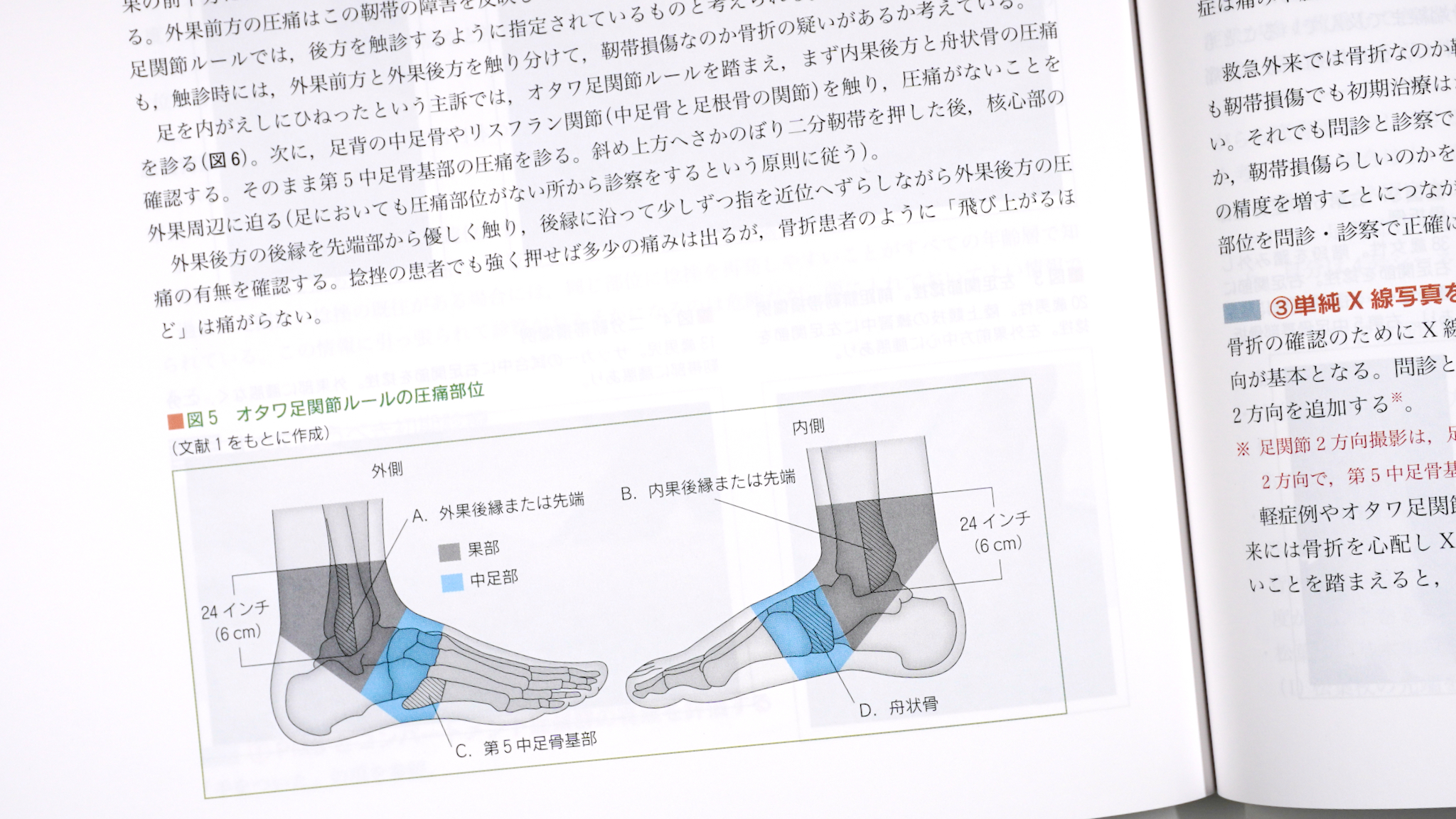 靱帯損傷でトリアージの分かれ目が骨折の有無だ。そこで、まず触診で当りをつける診断法がでる。