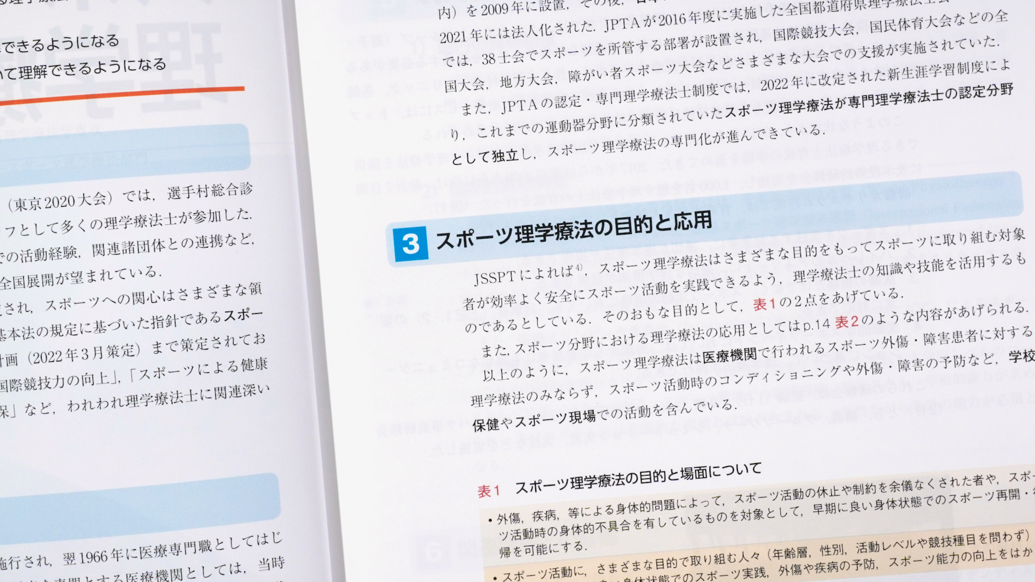 本書では、第1〜2章にスポーツ医学やその理学療法がどういうものかの総説がある。スポーツ医学に関わる人がどういう立ち位置になるのかなど、他でそれをまとまって学ぶチャンスがないので、ありがたい。