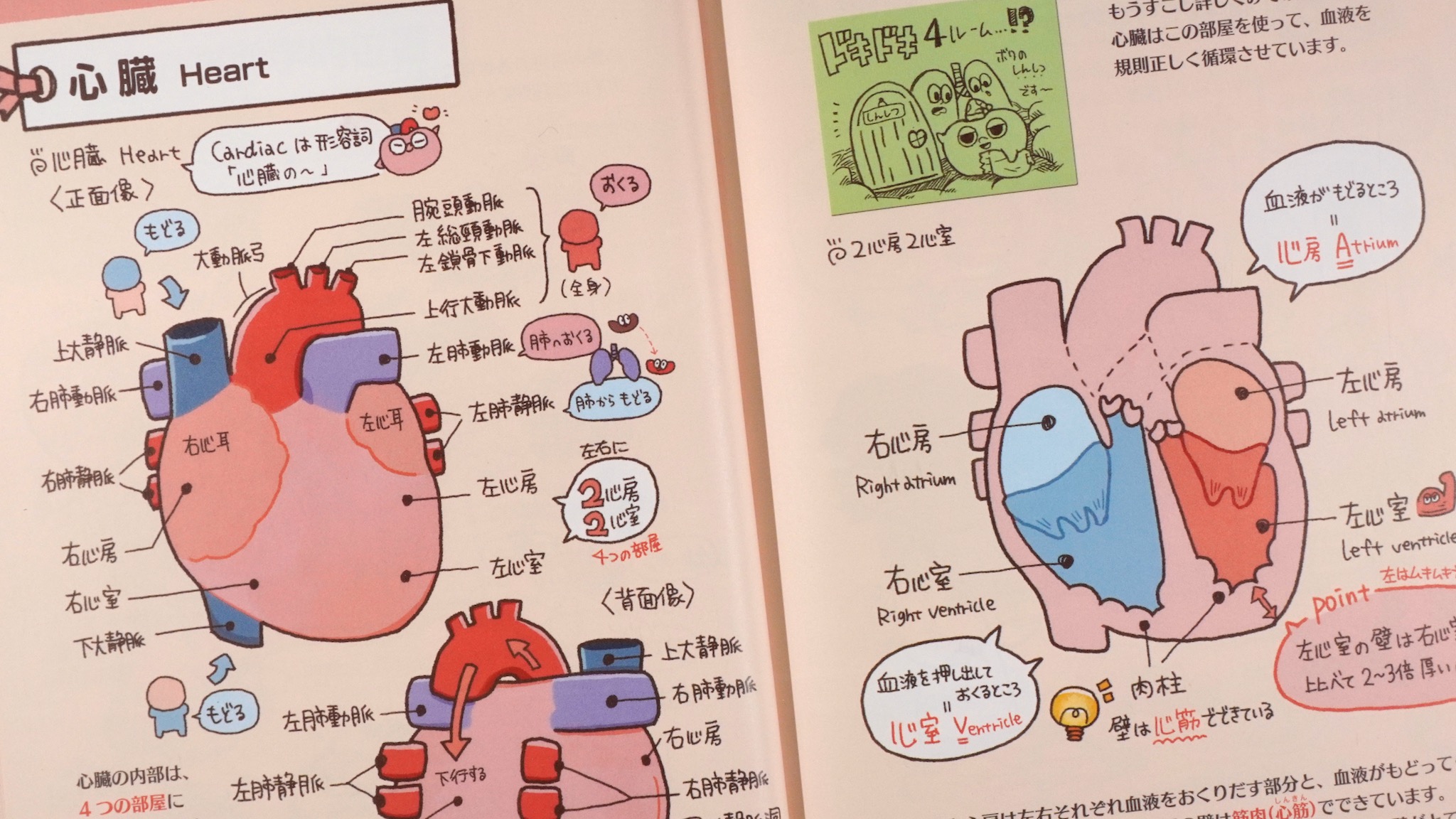 例えば心臓など、実物を解剖してみないと立体の把握は難しい。というか、実際に解剖しても心臓は難しい。心臓の立体画をどう描くかだけで本が1冊できるくらいだ。