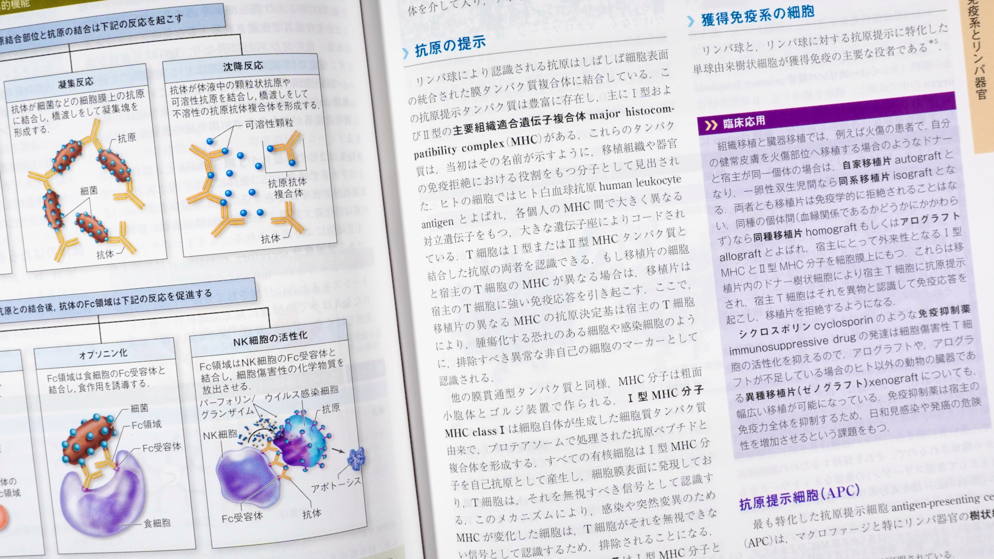ところどころに、「臨床応用」という紫色の地の囲み記事がある。地の文の流れに関連した臨床のトピックを端的に解説したもの。