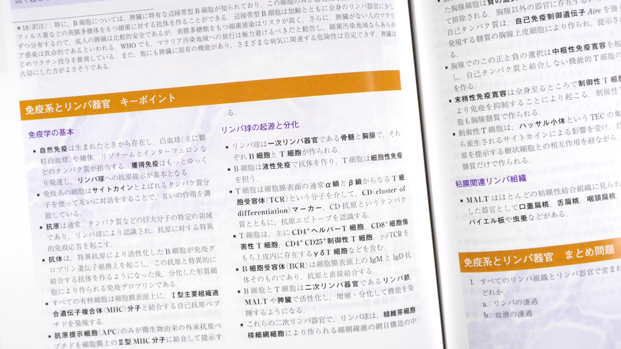 免疫関係の章をみてみよう。章の初めに、登場してくる臓器や組織の概要が図で示される。話がややこしくなる前に体のどこの話なのか、概略をつかめるのはよいことだ。
