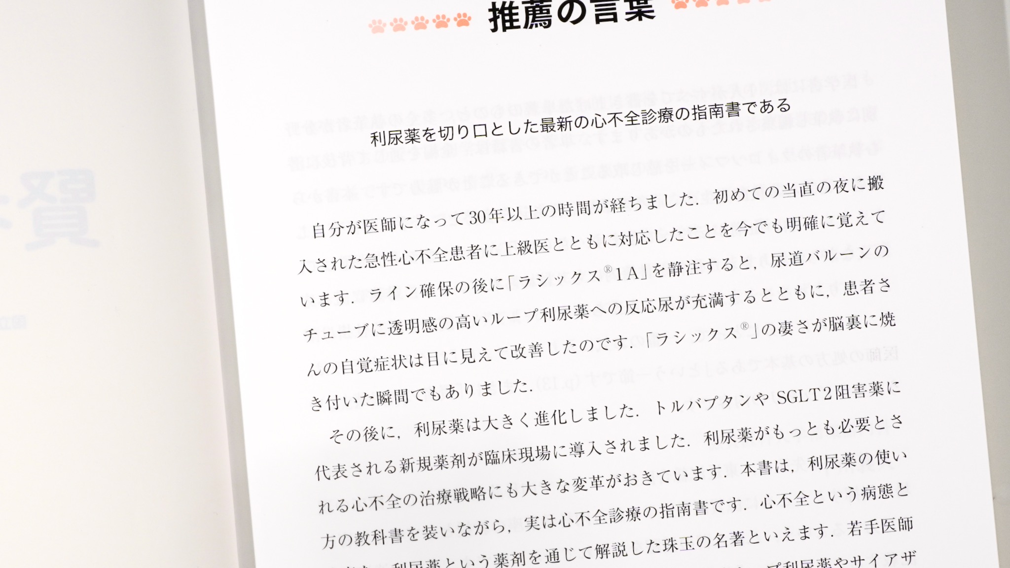 本書が何の本なのかは、推薦文をみたらわかる。本の立ち位置は著者による序文をみたらわかる。慢性心不全に対する利尿剤の使い方を上手にしたらいいのにと、腎臓の専門家が知恵をまとめた本だ。