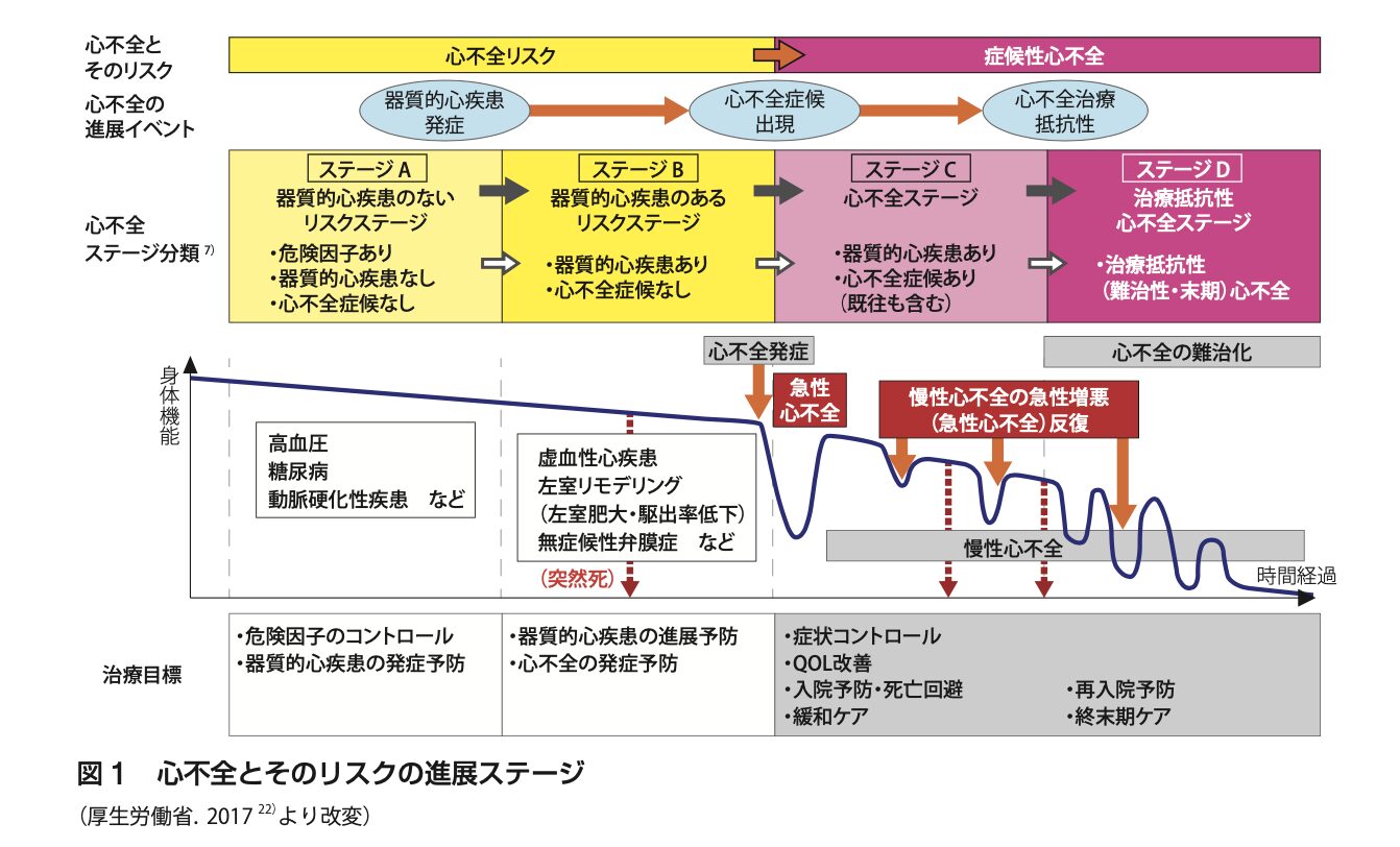 慢性心不全が悪化していくようす。急性・慢性心不全診療ガイドライン(2017年改訂版) より