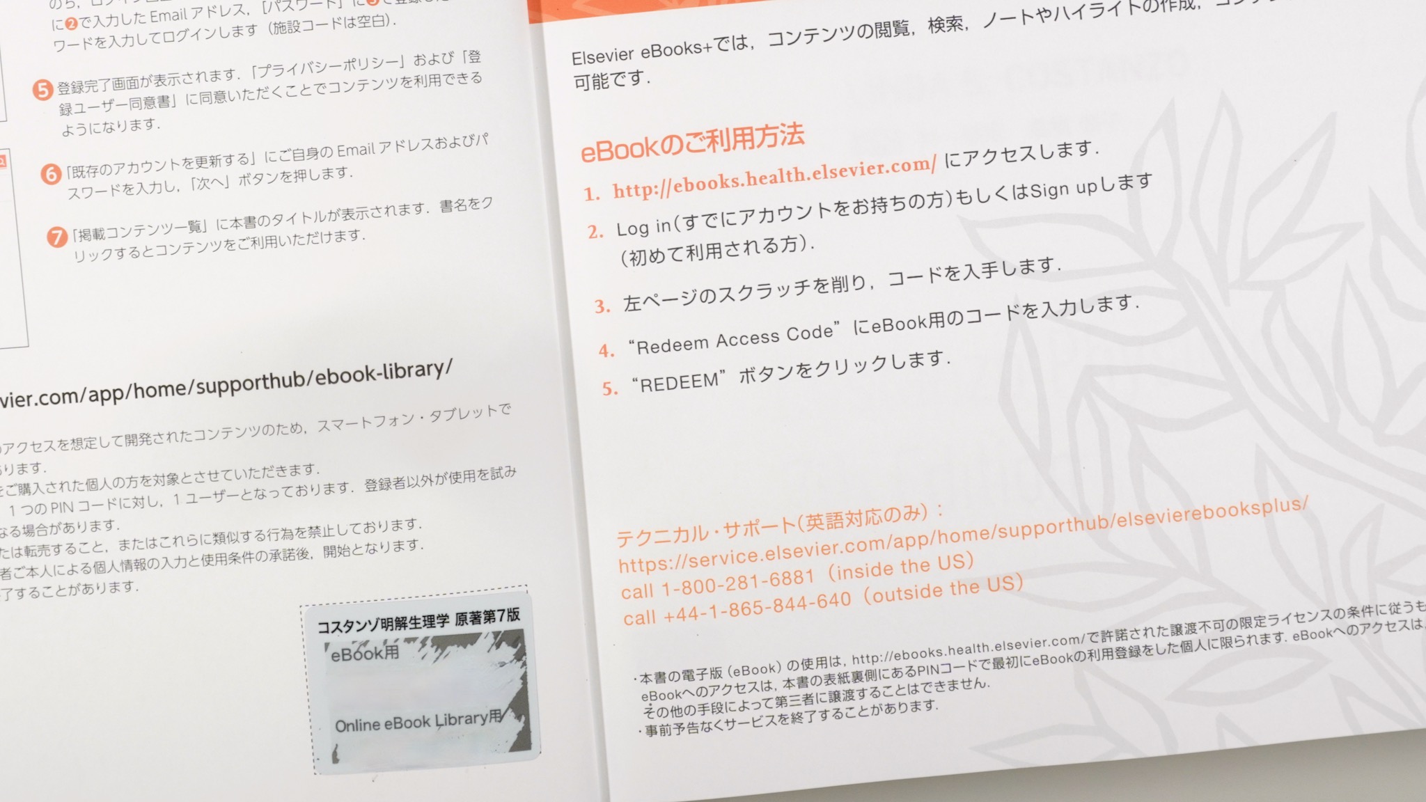『コスタンゾ』の日本語版でいうと、原著第6版はeLibrary、原著第7版はOnline eBook Library。プラットフォームが変更されたのは、電子版だけの販売をスコープに入れているかららしい。(eBooks+の英語版も付属)