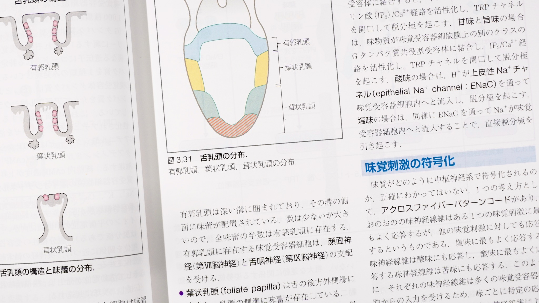 『コスタンゾ』でこれはないだろうと思っていたのが、「舌の味覚地図」。原著者にはこれに変なこだわりがあるらしく、第7版の原著には掲載されている。これが都市伝説だとの研究や論説は半世紀前からある。日本語版では、本文からも図からも味覚地図の件が「そっと」削除されている。翻訳者の良心だろう。しかし、訳注として原著の誤謬を正してもよかったかもしれない。