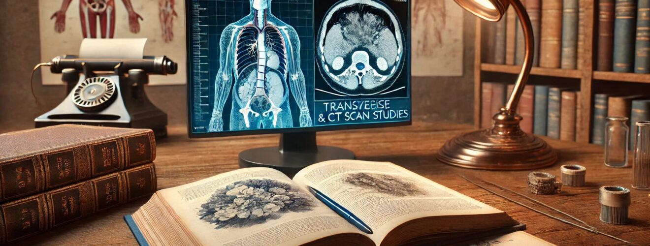 体幹部の横断標本を当日限りで展示する。数センチ幅のスライスで、CTと同じ向きでみられるようにしてある。断面に現れたいろいろな構造を同定し、解剖体やCTと見比べていこう。