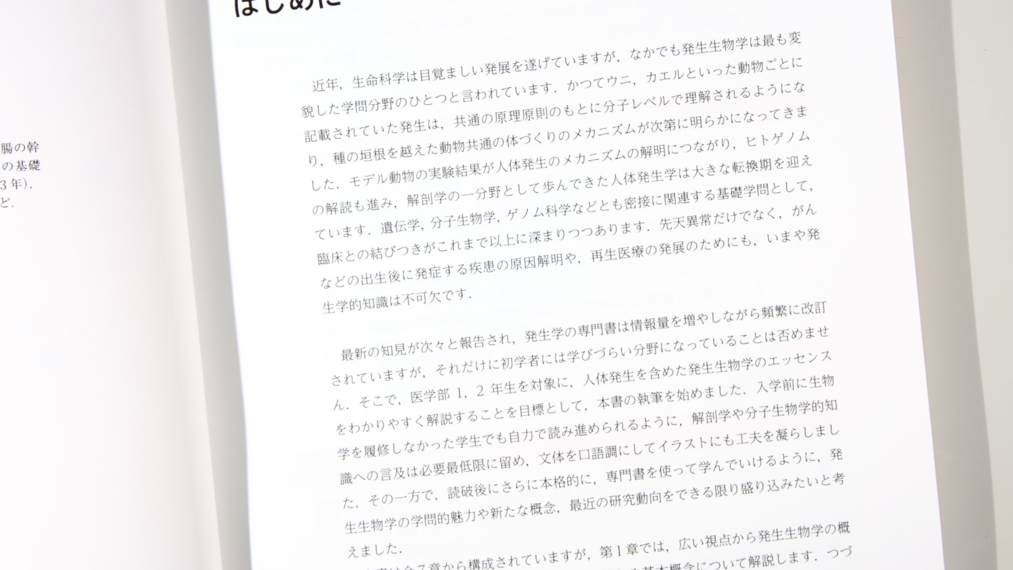 そういうわけで、発生学や発生生物学のファンダメンタルズを1年生のうちに固めるのに本書はピッタリだ。2年生で器官形成の詳細や発生異常を学ぶときに、うまい具合に学習を進められるだろう。