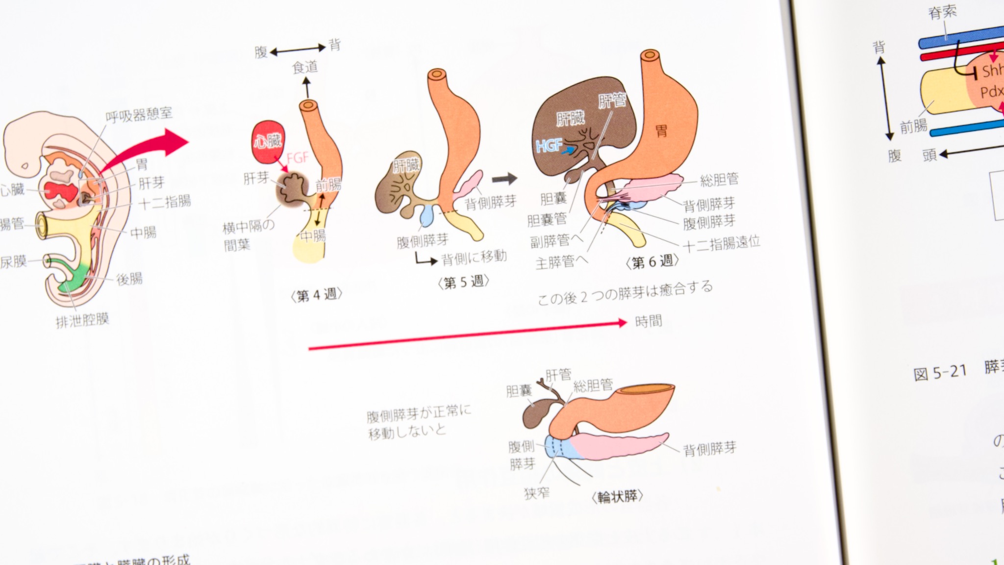胃の回転、肝胆膵の発生は、まとめてひとつの図